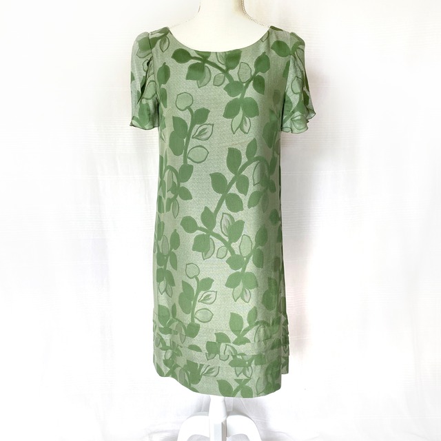 植物柄を織り込んだ、てろんとした生地のワンピース。 シンプルなシルエットながら、袖やスカート裾のちょっとしたデザインがかわいい一枚です。 後ろをリボンでとめる、かぶるタイプです。 全体に裏地がついています。 4・5枚目画像が実際に近いお色味になります。 [ BRAND ] STRAWBERRY-FIELDS [ SIZE ] 表記サイズ 2 肩幅 38cm 身幅 44cm 着丈 89cm 裾幅 50cm ※平置き採寸です。若干のずれが生じる場合がございますので予めご了承下さい。 [ MATERIAL] キュプラ66% アセテート34% [ CONDITION ] A --------------------------- S : ほぼ新品同様またはタグあり未使用 A : 使用感が少なく状態が良い B : 使用感はあるが、傷や汚れが少ない C : 使用感の他、傷や汚れが見られる (画像をご確認下さい) --------------------------- 未使用のものを含め、ユーズド・セカンドハンドであることをご理解の上、ご購入下さい。ノークレーム・ノーリターンでお願いしております。 --------------------------- 商品について個別のお問い合わせはCONTACTページからご連絡ください。 ---------------------------