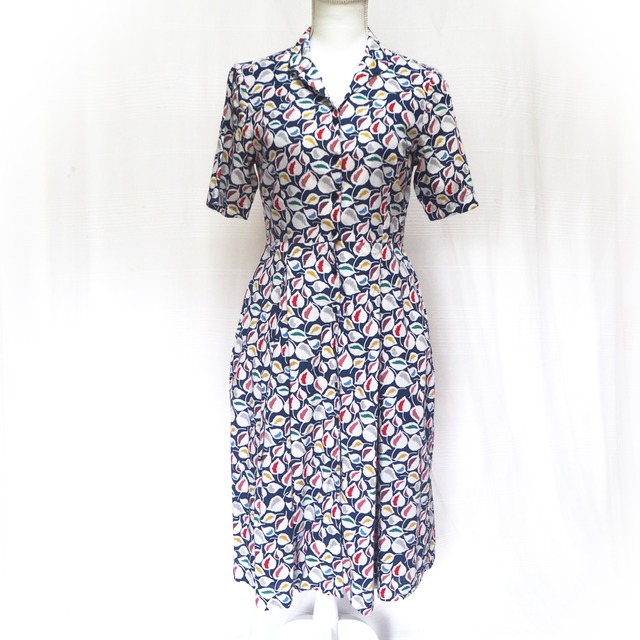 襟と、絞ったウエストからのフレアなシルエットのレトロ感と、ヴィヴィットなマルチカラーの対比が目をひくワンピース。これだけで主役になれる一枚です。 紺色の裏地にもタックが入っていたり、ポケットにタグが隠れていたりと、SEASALTらしい丁寧な仕上がり。 全身に裏地がついています。裾からふたつのボタンが外れているので、ご注意ください。 4・5枚目画像が実際に近いお色味になります。 [ BRAND ] SEASALT CORNWALL [ SIZE ] 表記サイズ UK8 / EU36 肩幅 42cm 袖丈 26cm 身幅 41cm ウエスト 34cm 着丈 106cm 裾幅 70cm ※平置き採寸です。若干のずれが生じる場合がございますので予めご了承下さい。 [ MATERIAL] コットン100% [ CONDITION ] B --------------------------- S : ほぼ新品同様またはタグあり未使用 A : 使用感が少なく状態が良い B : 使用感はあるが、傷や汚れが少ない C : 使用感の他、傷や汚れが見られる (画像をご確認下さい) --------------------------- 未使用のものを含め、ユーズド・セカンドハンドであることをご理解の上、ご購入下さい。ノークレーム・ノーリターンでお願いしております。 --------------------------- 商品について個別のお問い合わせはCONTACTページからご連絡ください。 ---------------------------