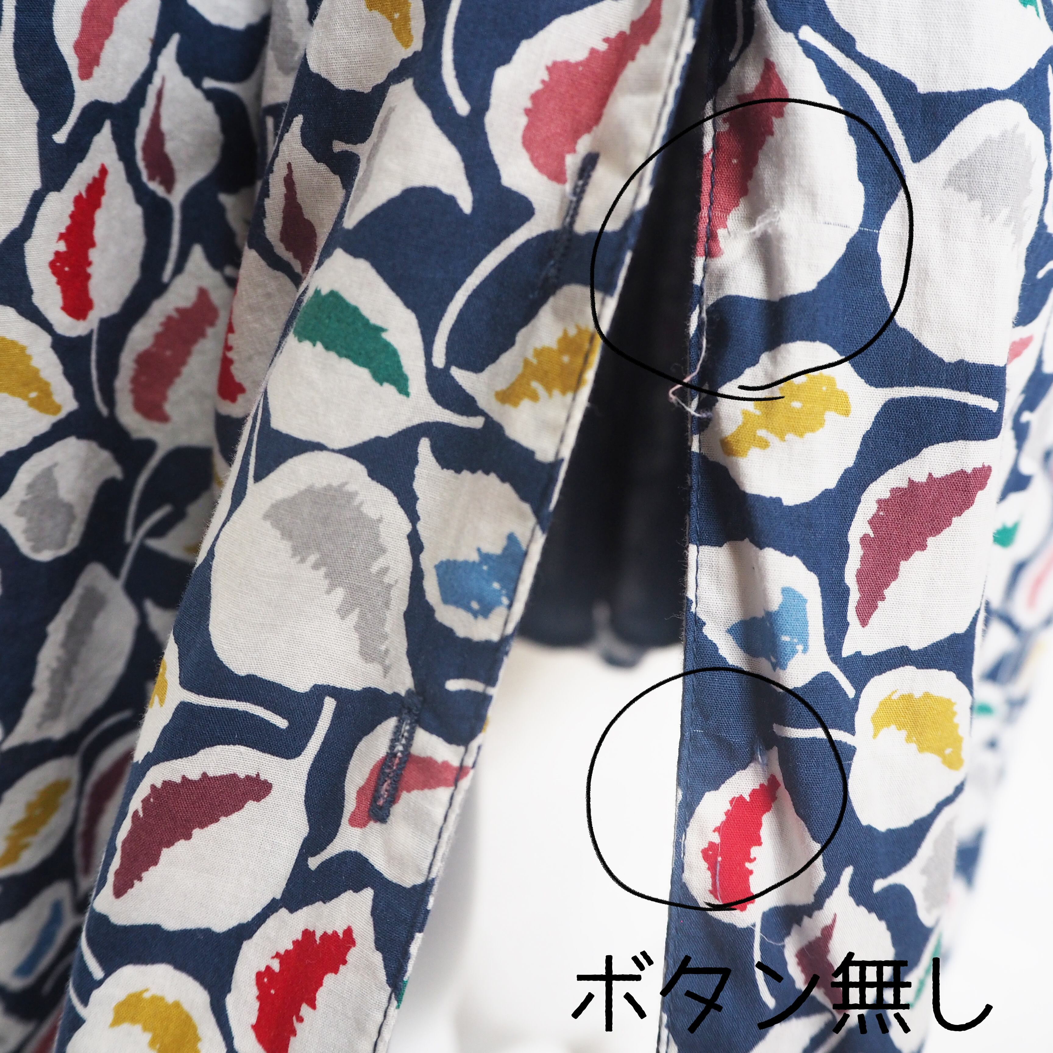全身に裏地がついています。裾からふたつのボタンが外れているので、ご注意ください。
