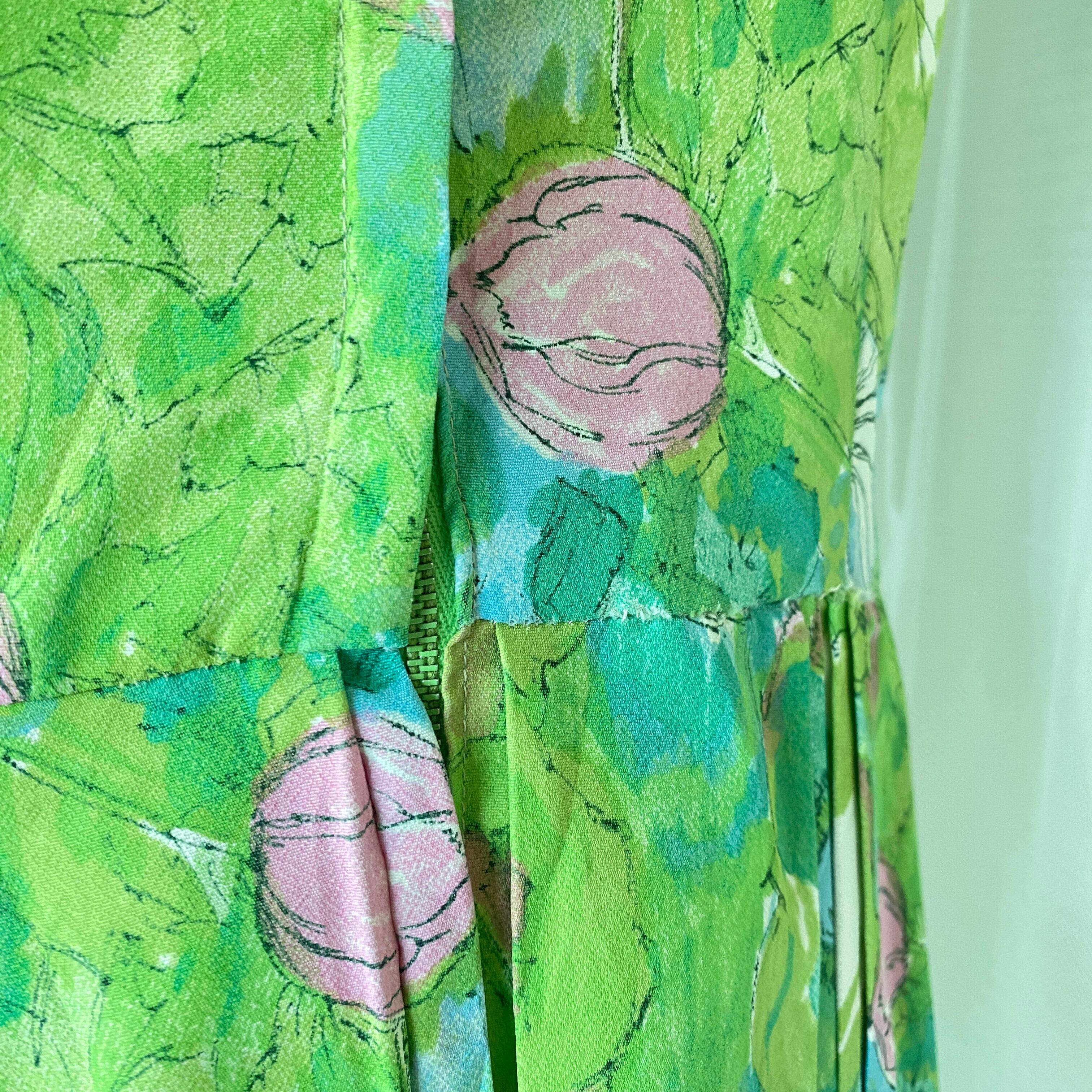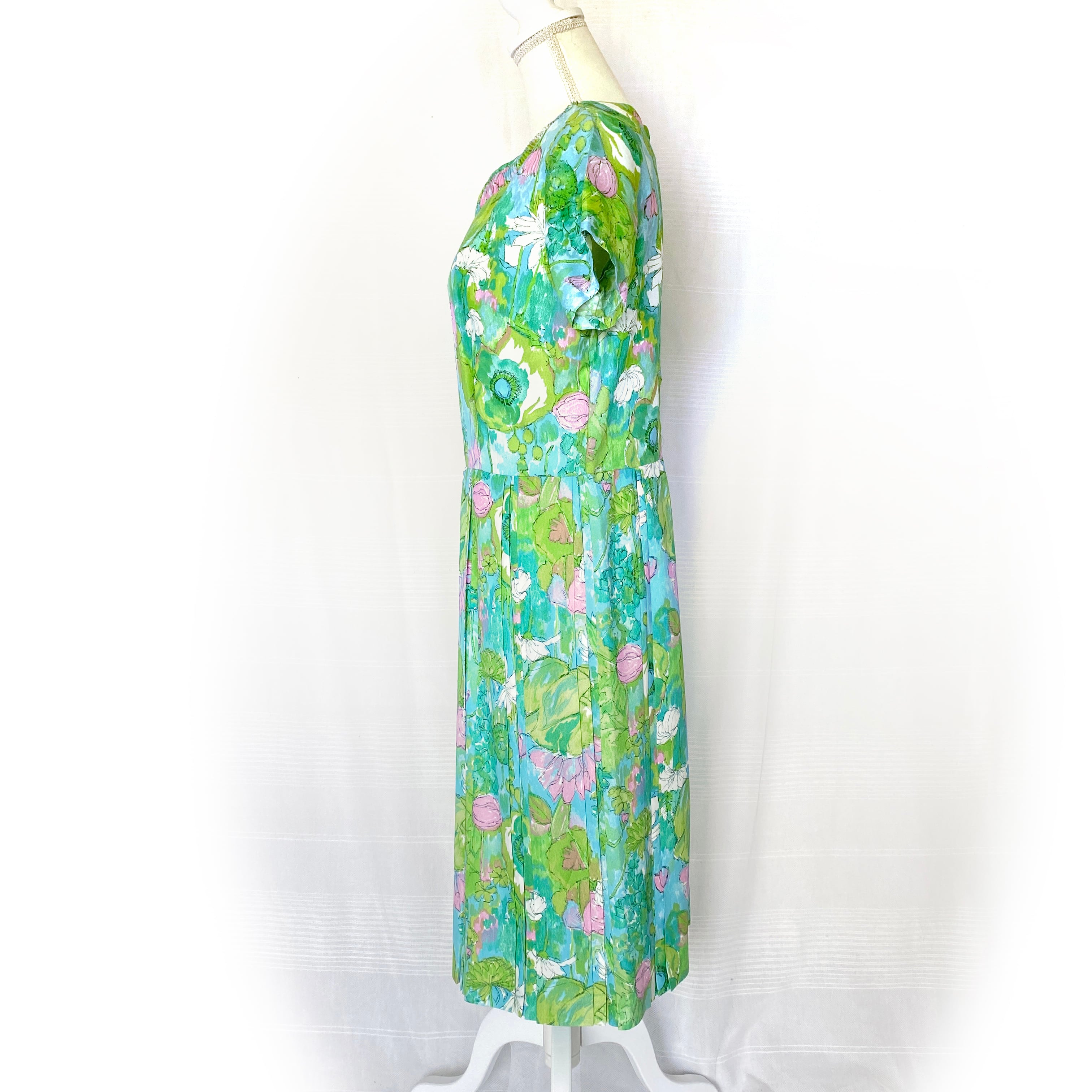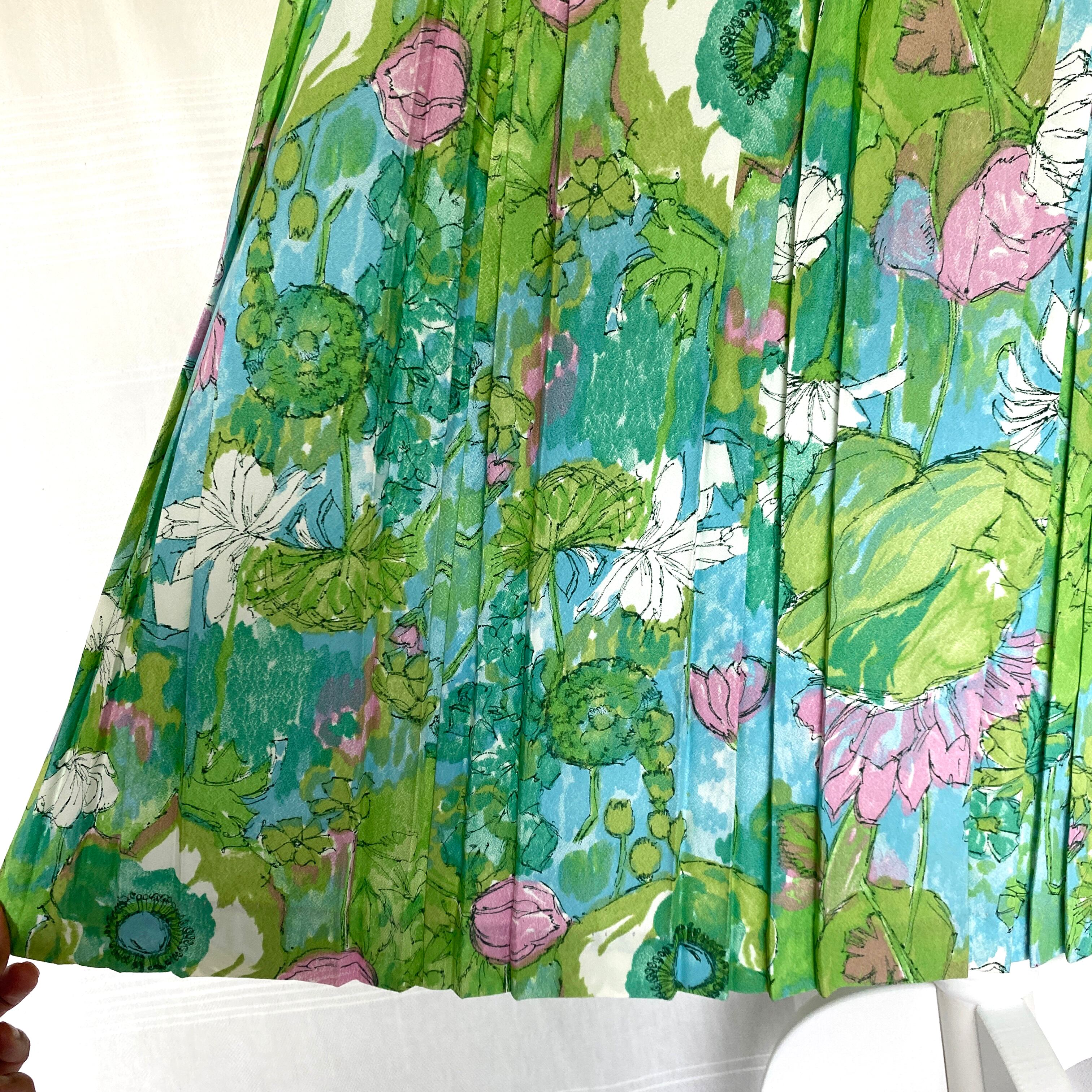 ハンドメイドの丁寧な仕事が感じられる、フラワープリントのヴィンテージプリーツワンピース。