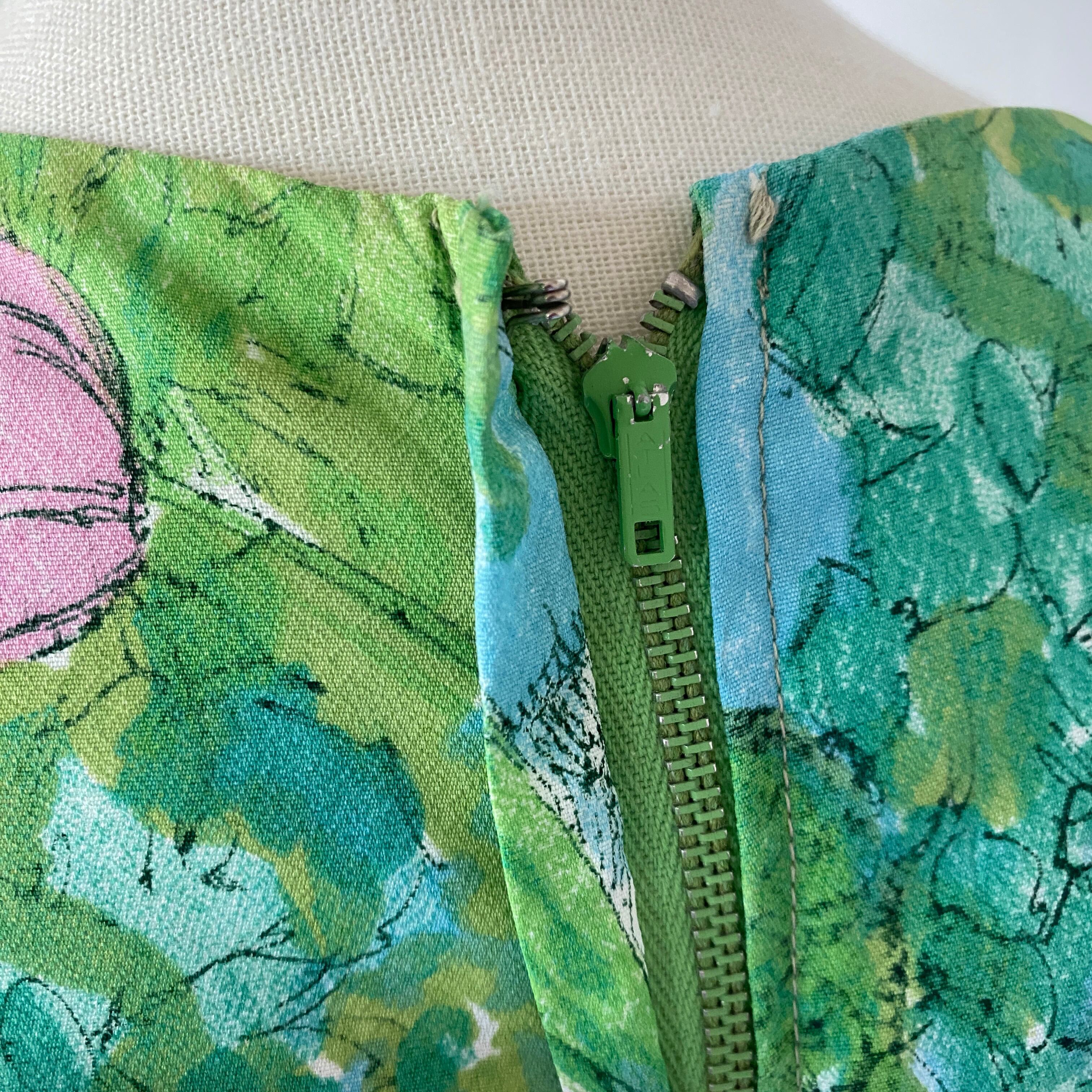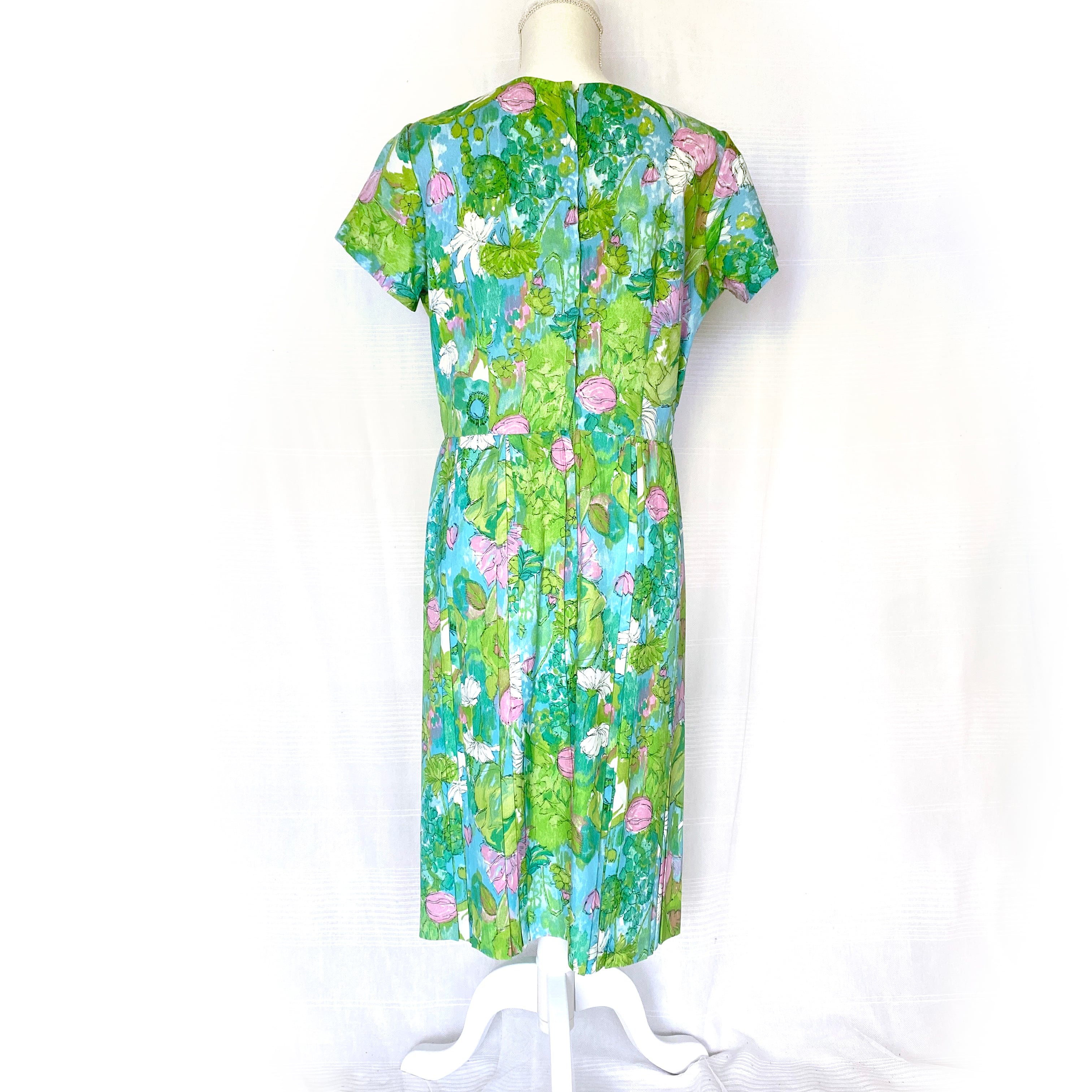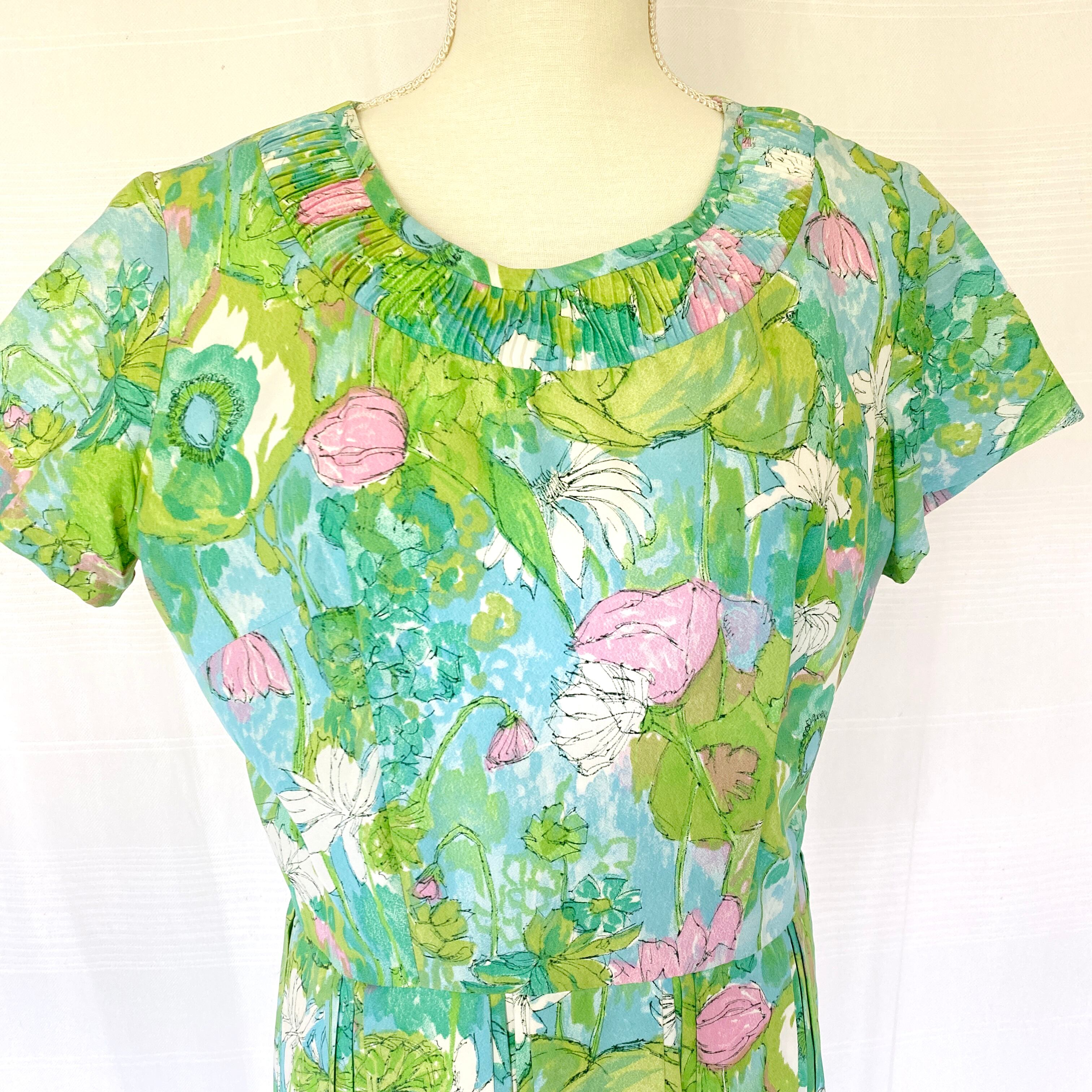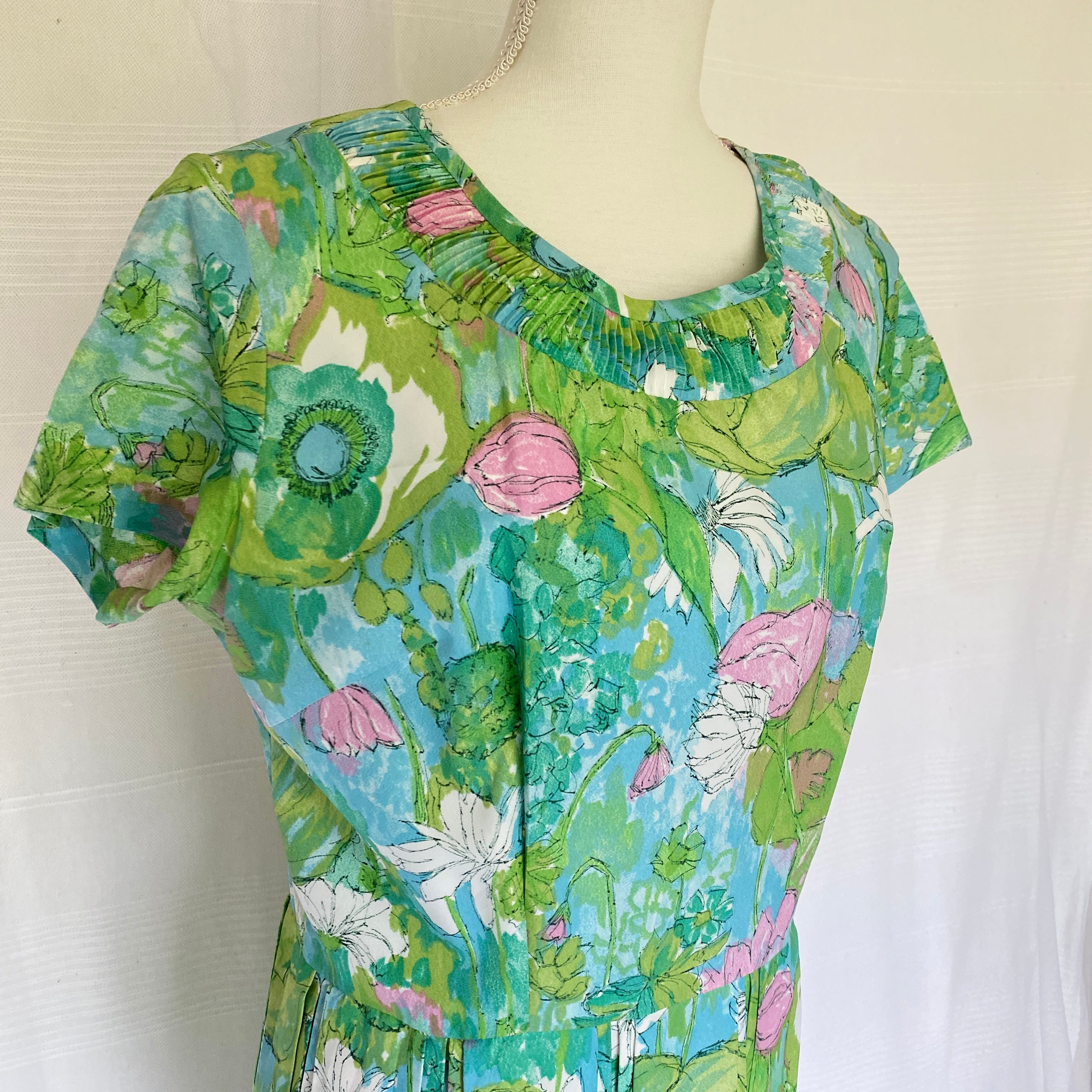 ハンドメイドの丁寧な仕事が感じられる、フラワープリントのヴィンテージプリーツワンピース。