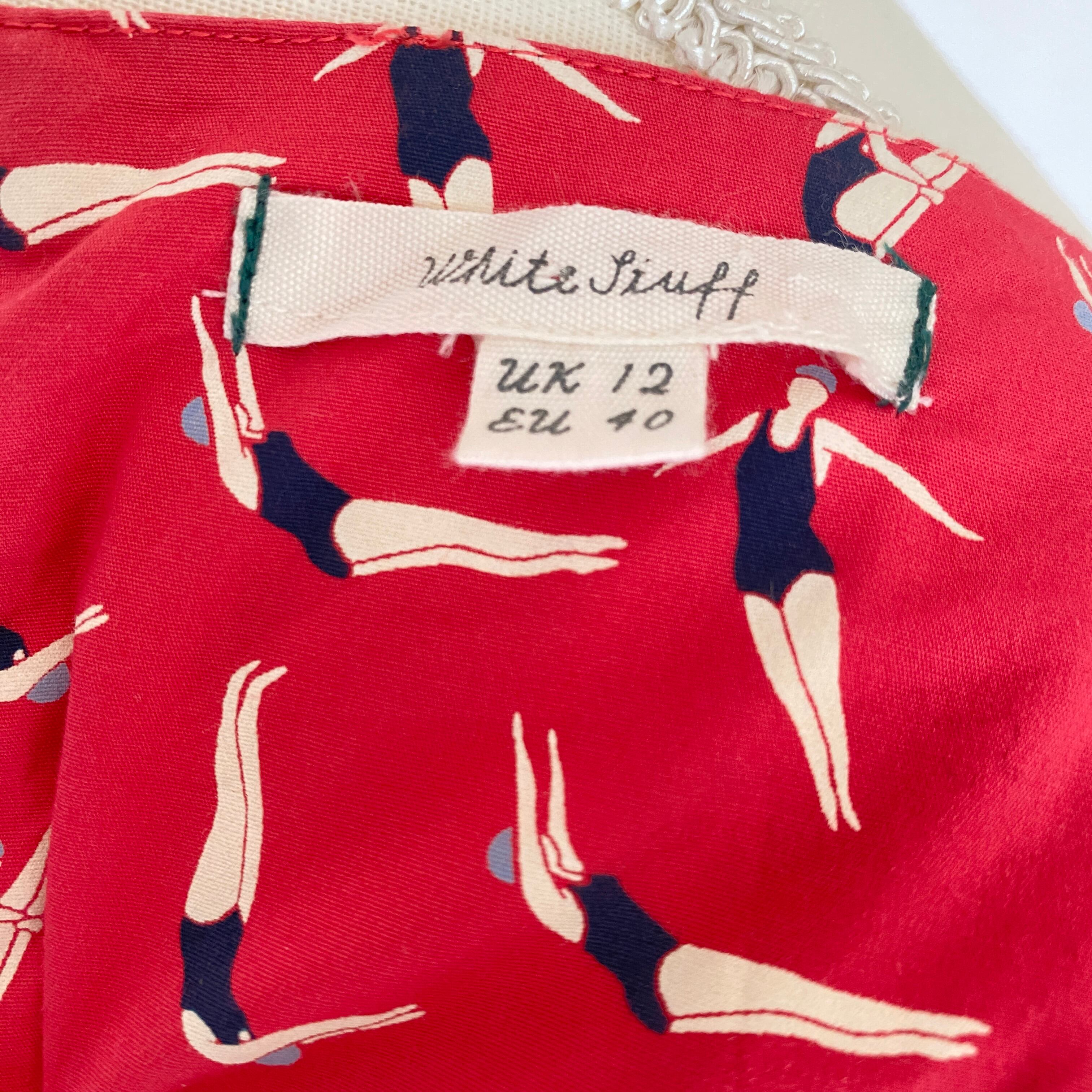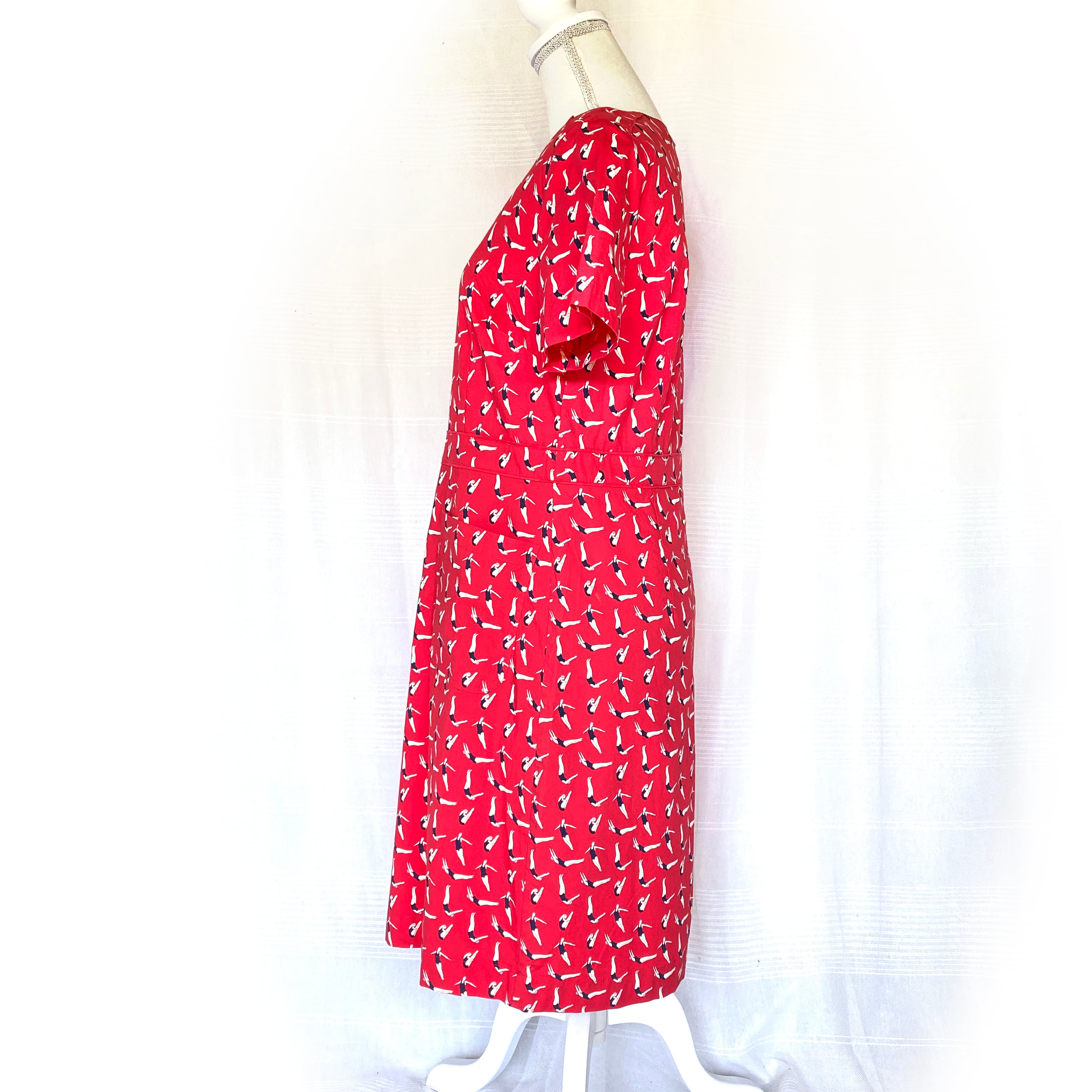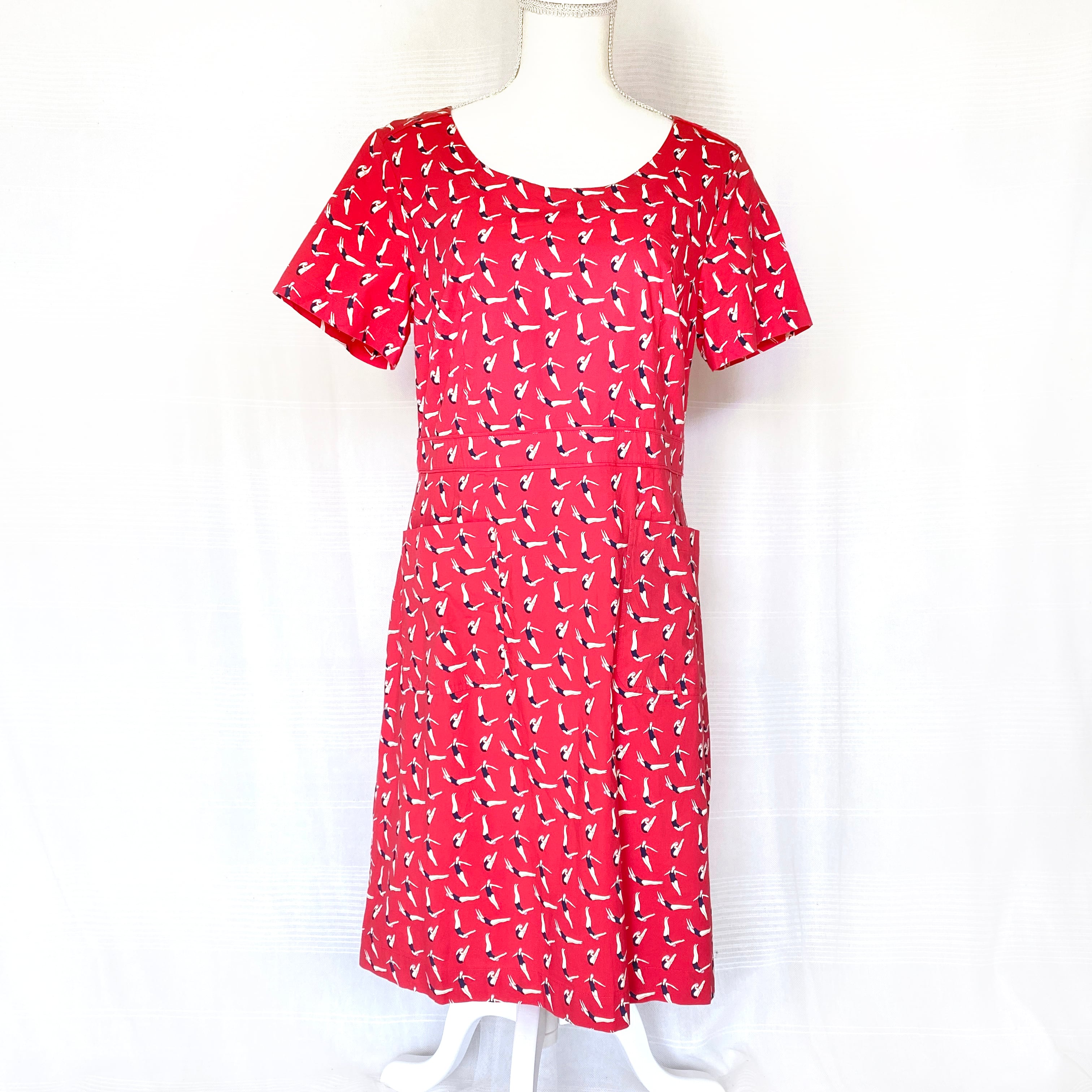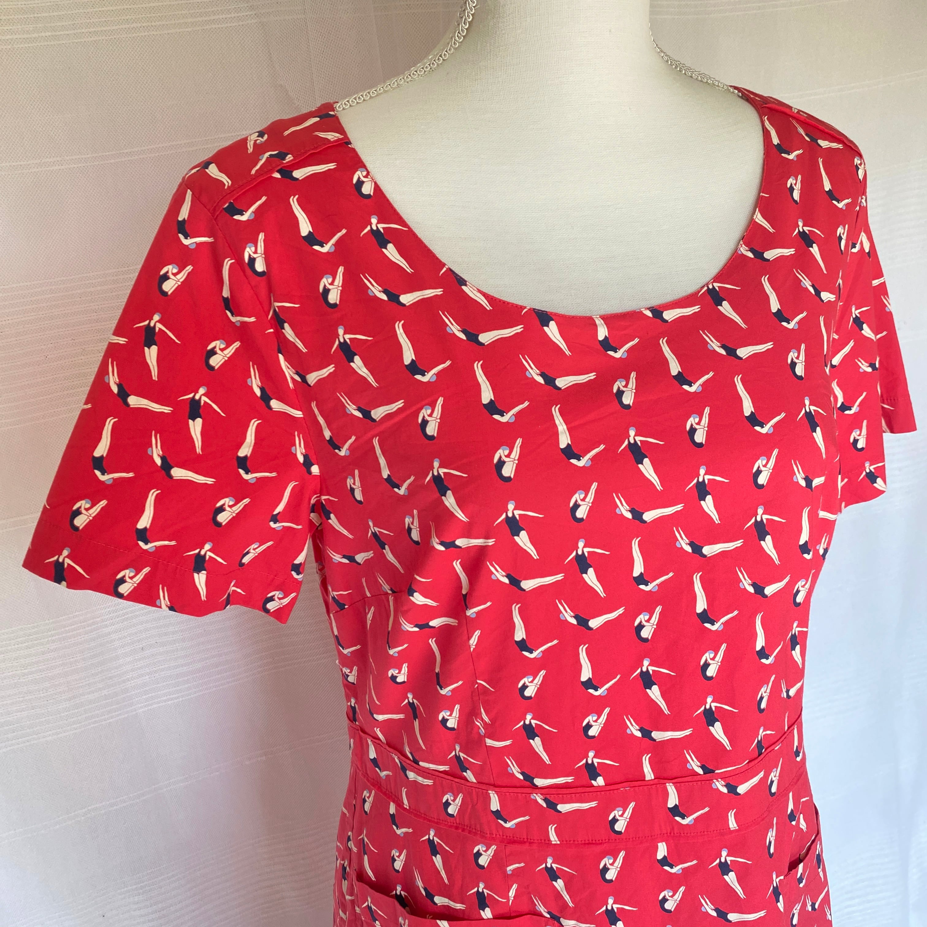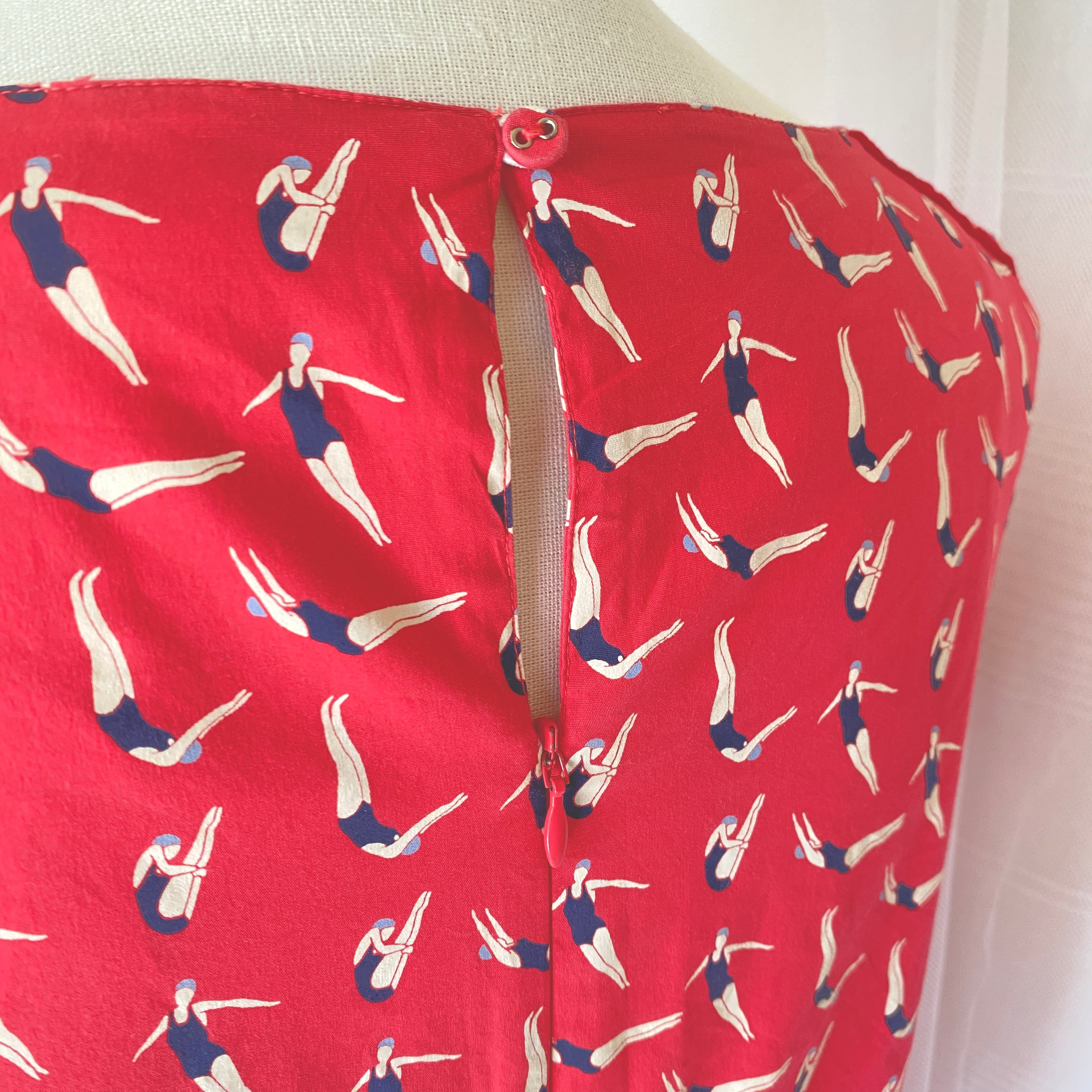 飛び込みシルエットのプリントがされた真っ赤なワンピース。