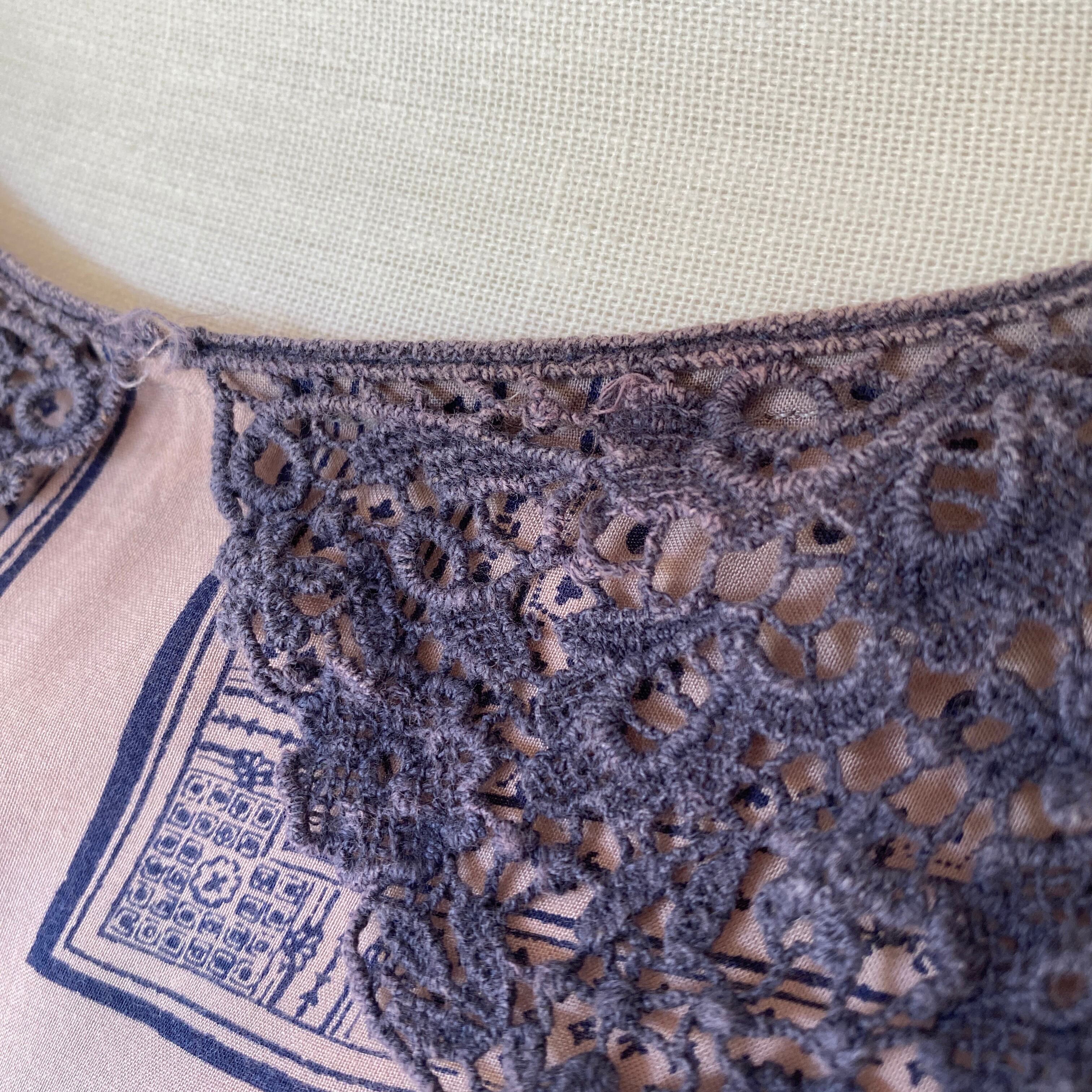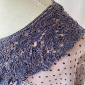 襟のクロシェに色落ちと使用感あり、生地全体にも使用感があります。