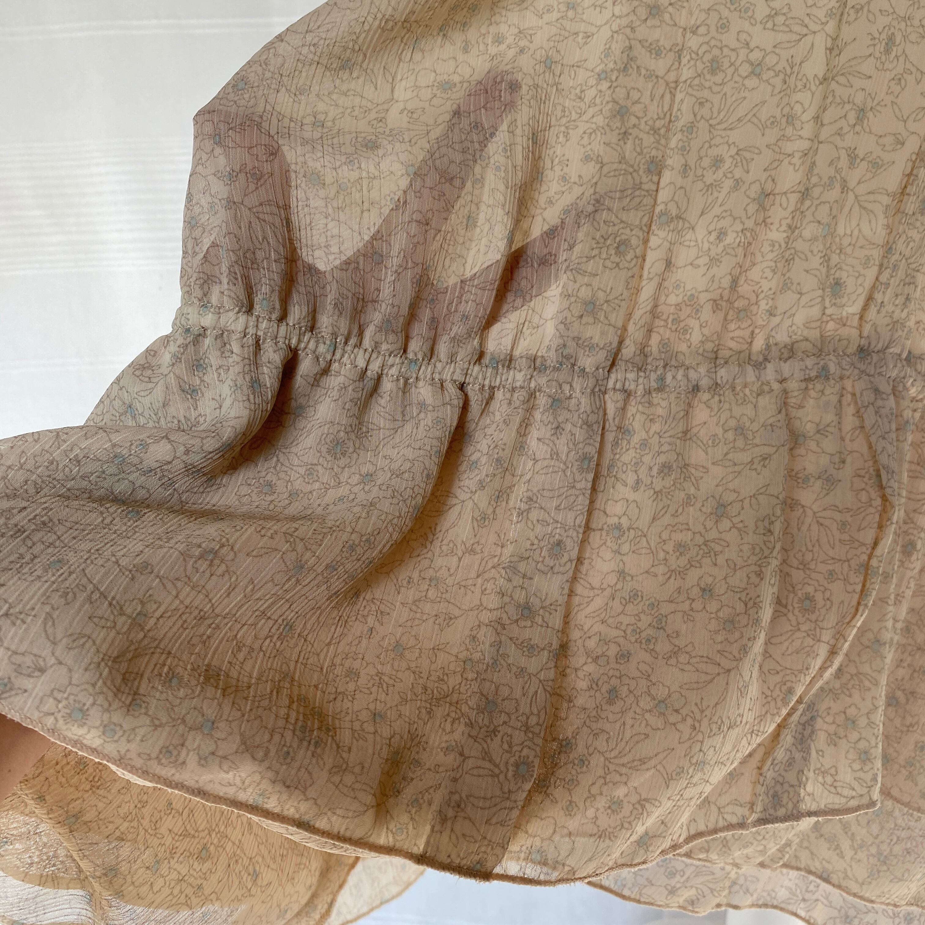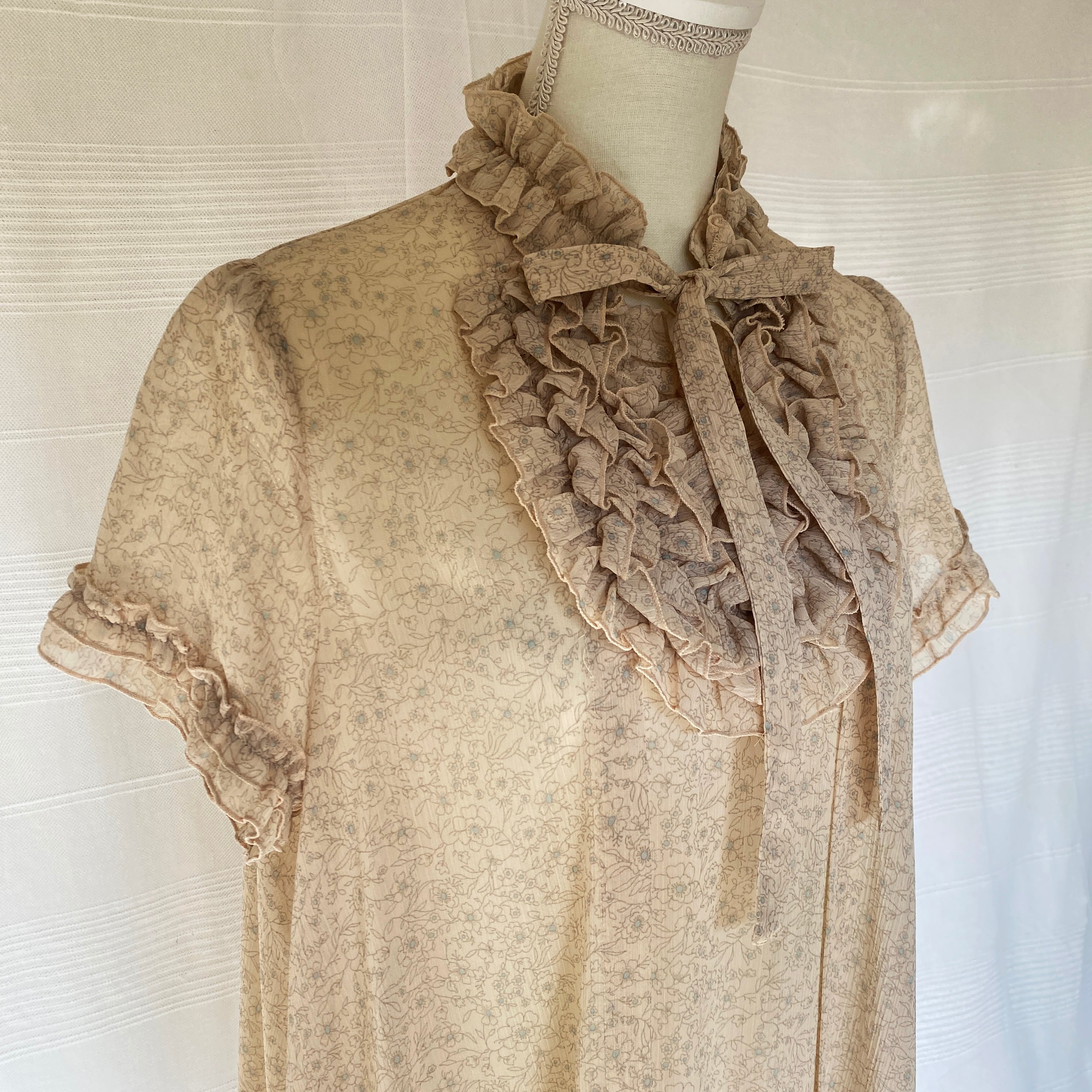 ベージュに小花の総柄、薄くのったブルーがかわいい一枚です。