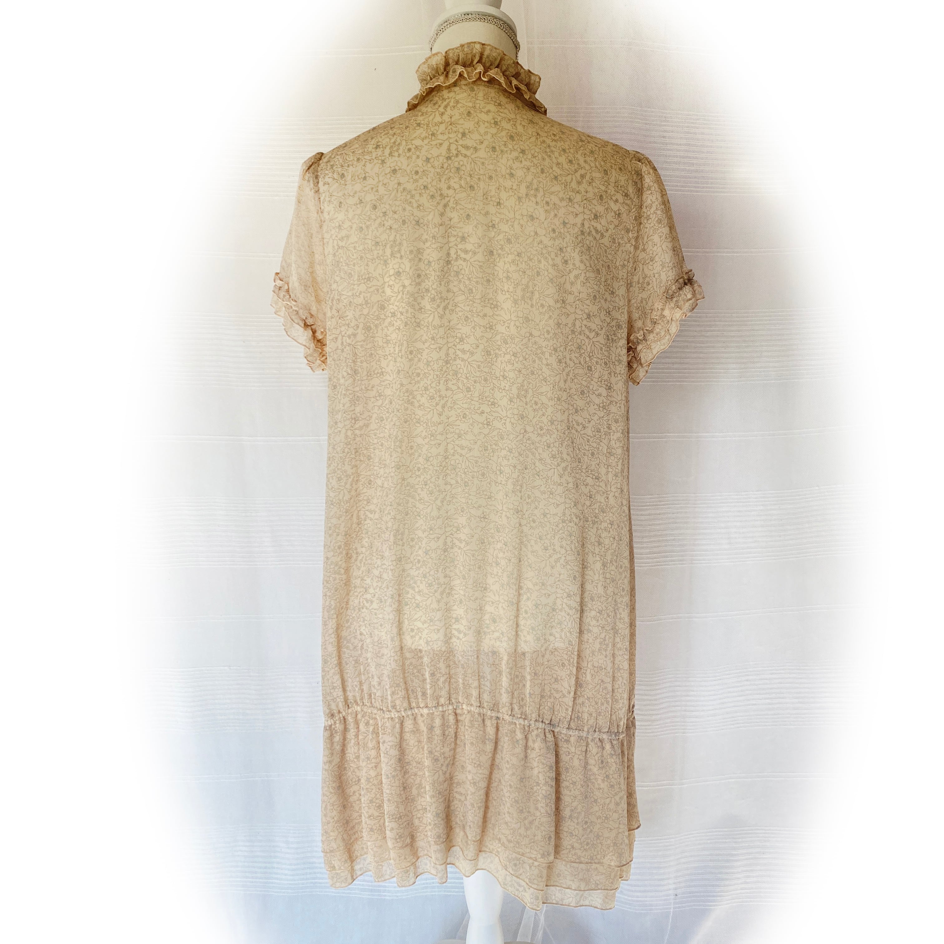 ボウタイや、襟元のフリル、裾の切り合えフリルがラブリーなシアーワンピース。