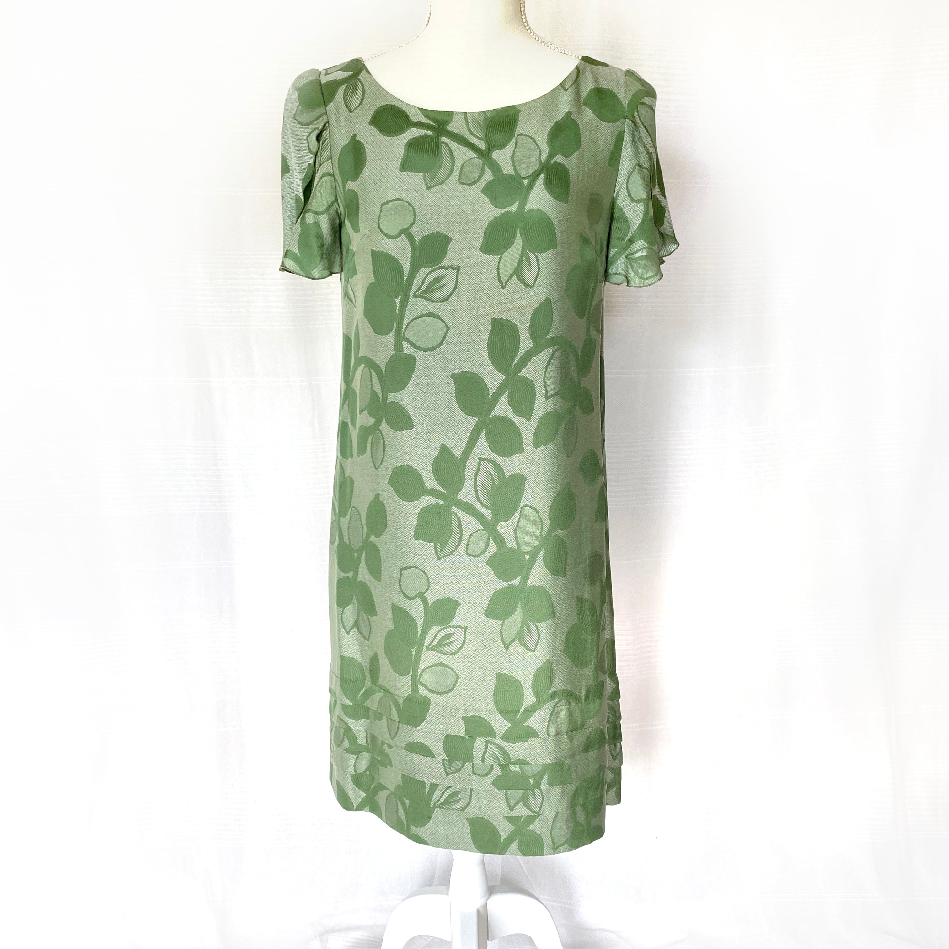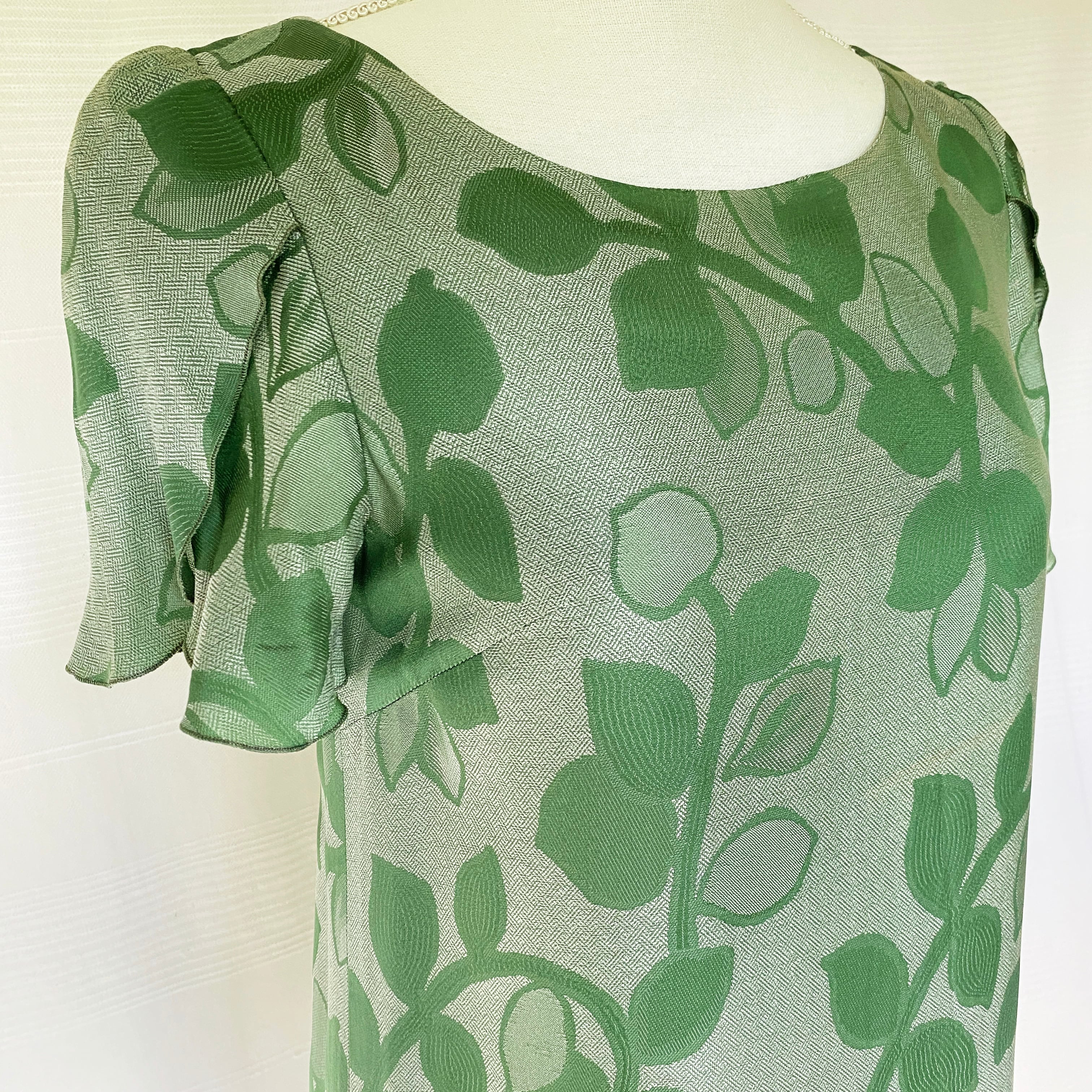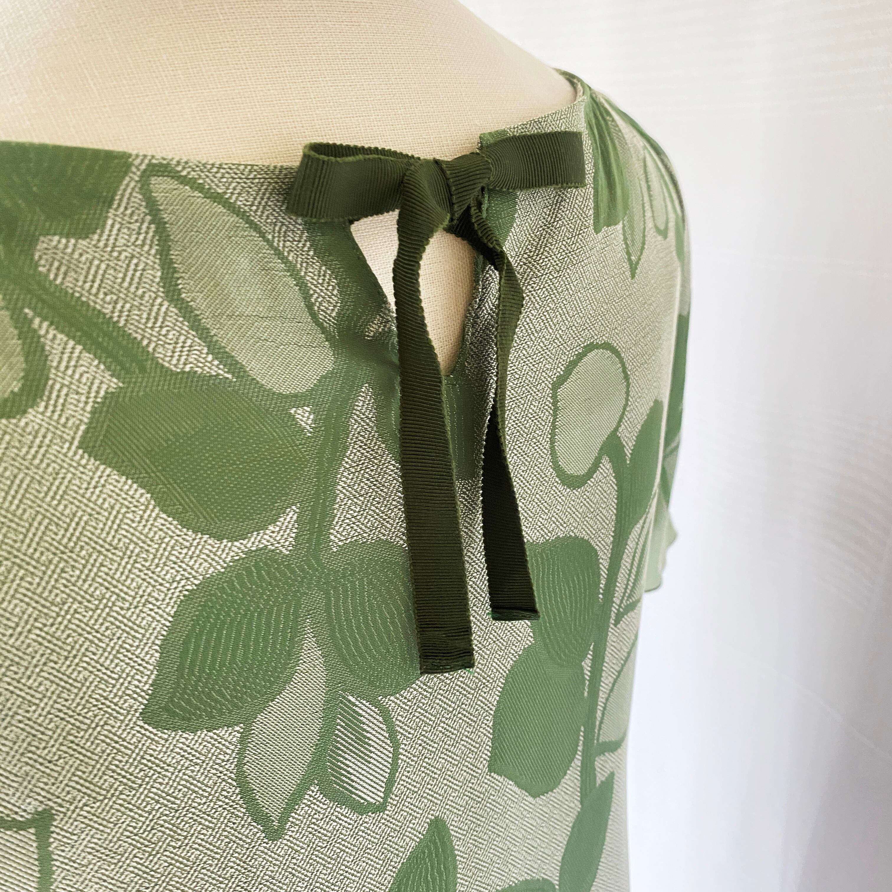 植物柄を織り込んだ、てろんとした生地のワンピース。