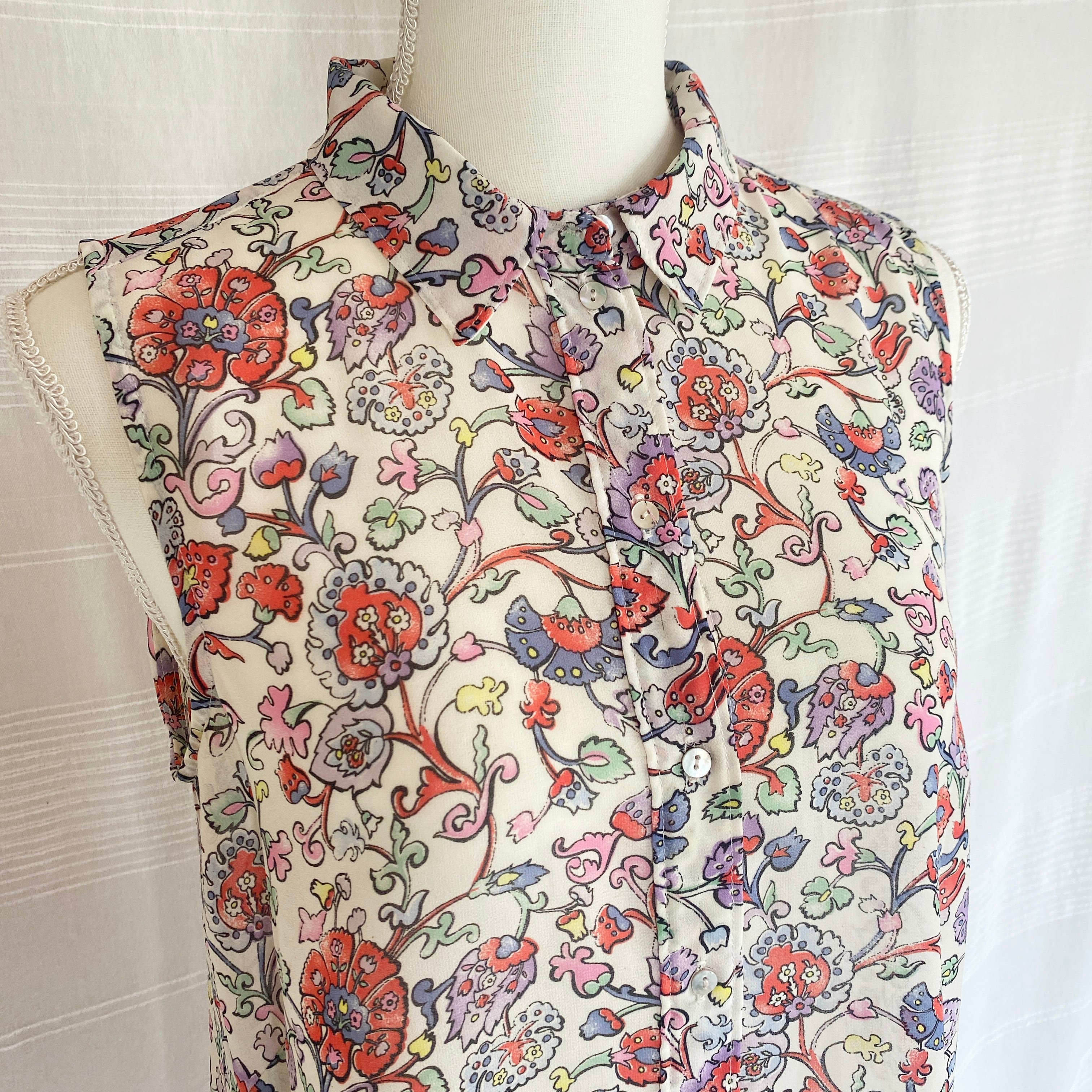 flower print sleeveless shirt