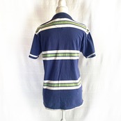 くすんだネイビーにやさしい白とグリーンのボーダーが入った一枚です。