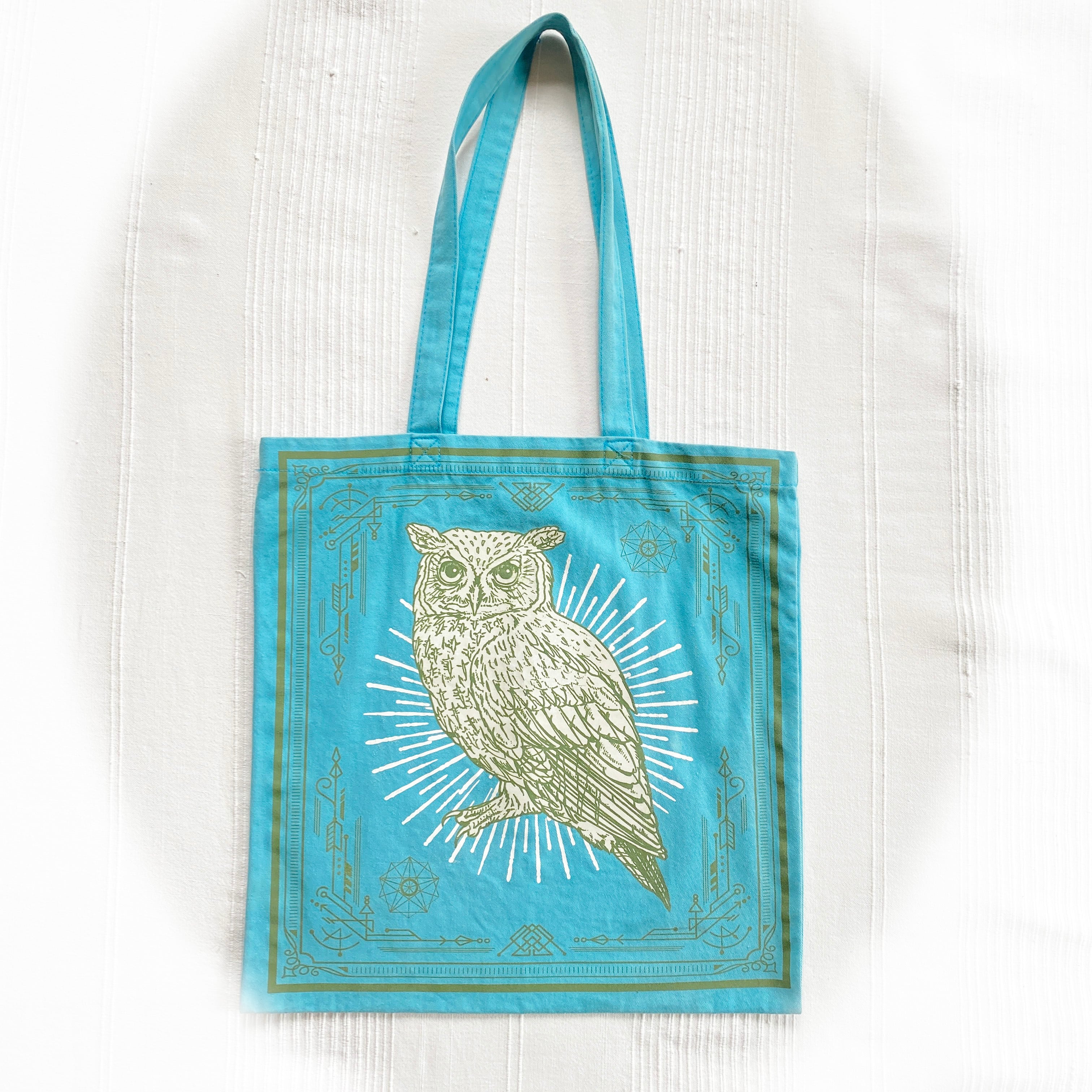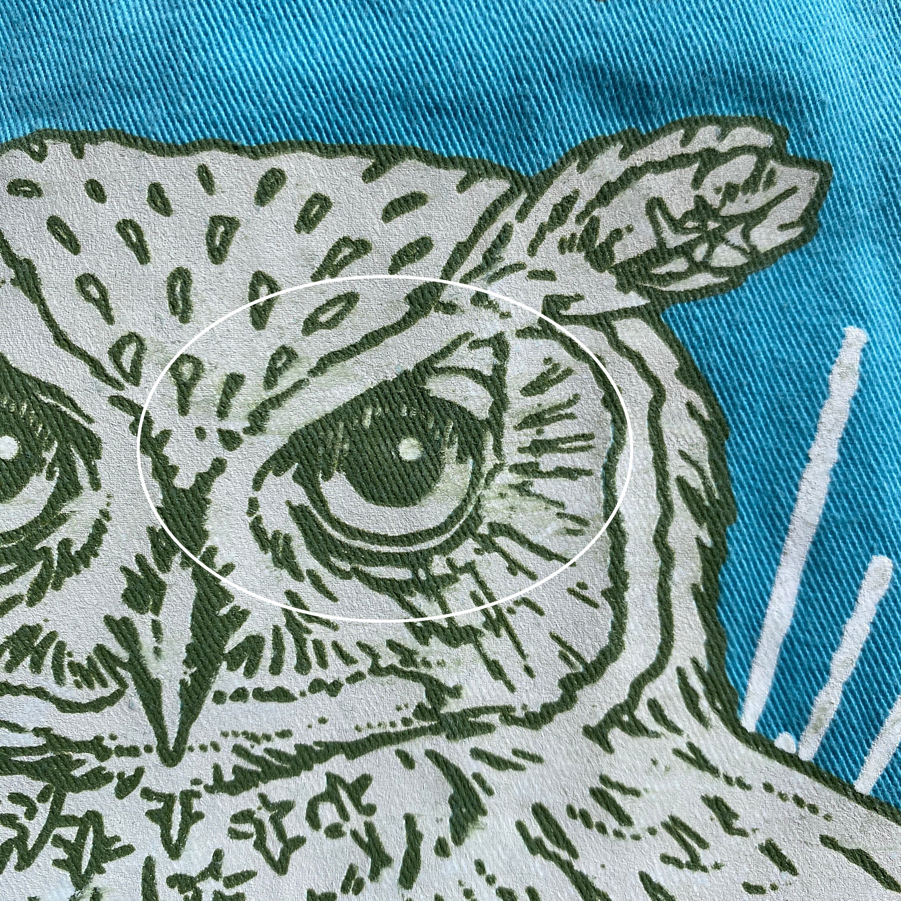 ブルーに渋めのグリーンで描かれたフクロウのイラストが、インパクトがありつつ落ち着いた雰囲気も与えてくれます。