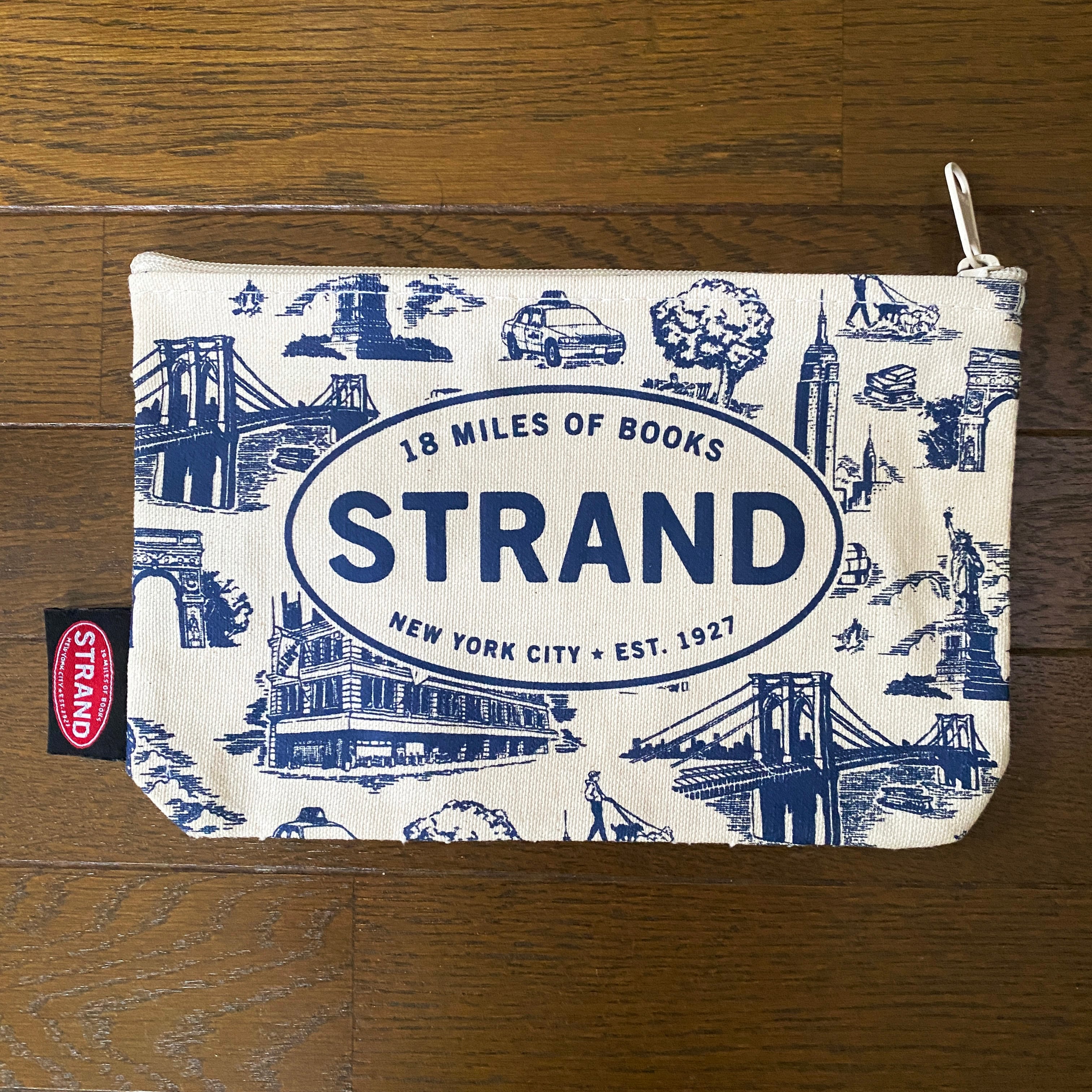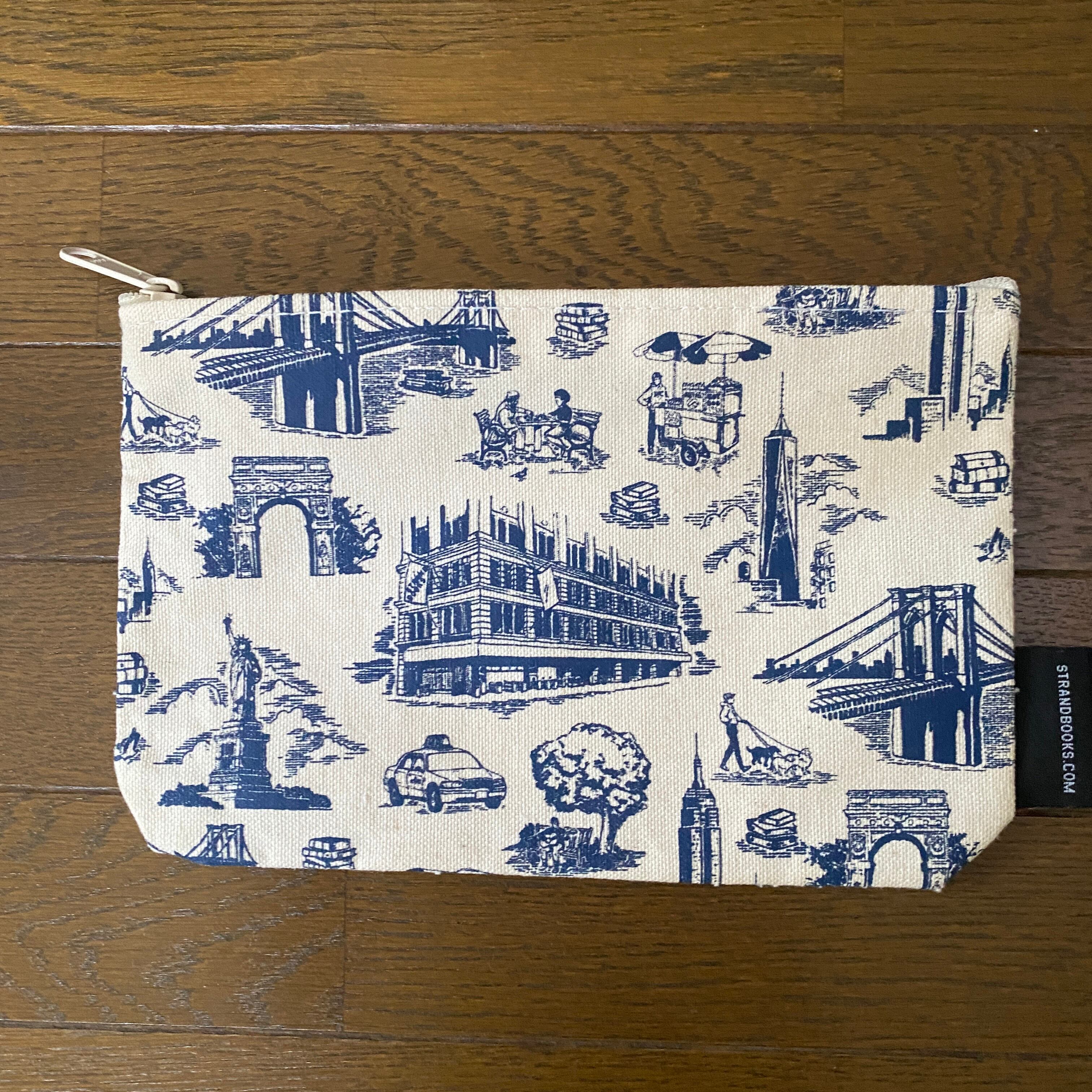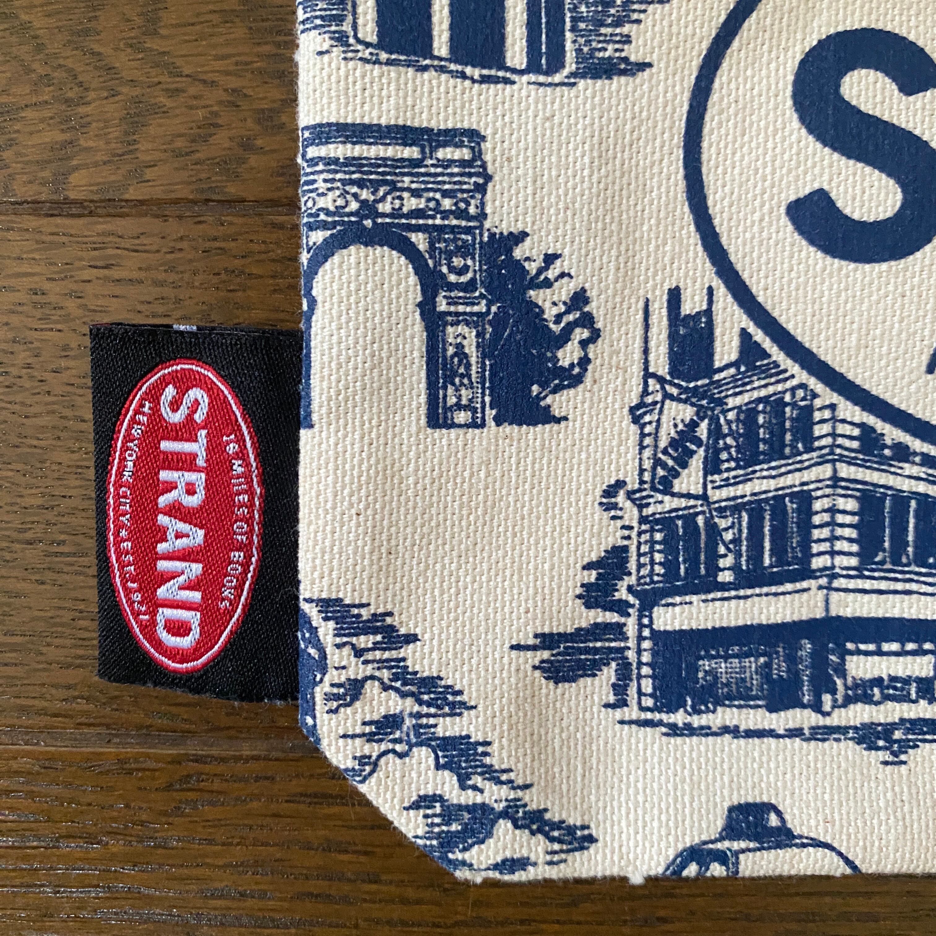 しっかりした生成りの生地に、ネイビーでNYのアイコンのペン画がプリントされています。