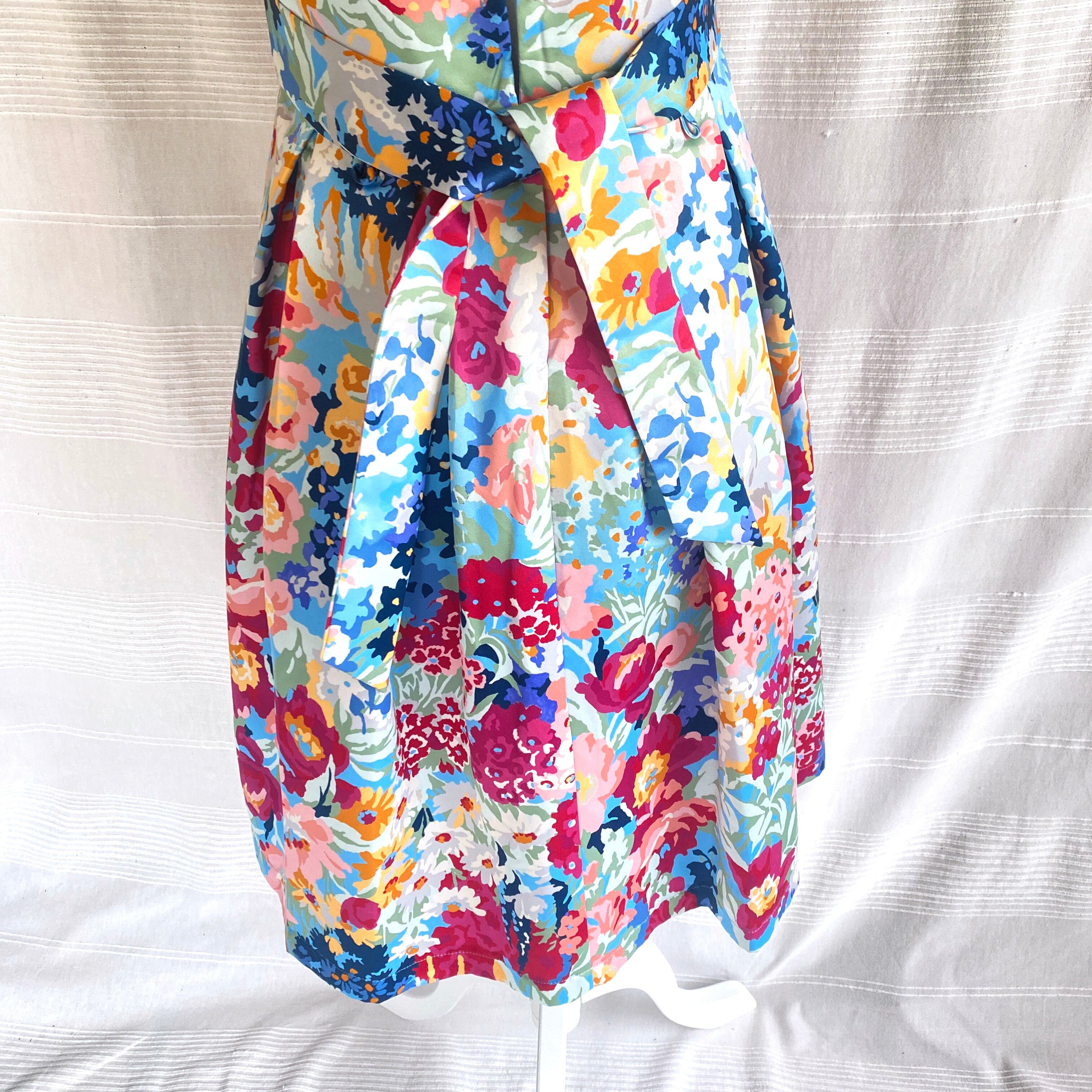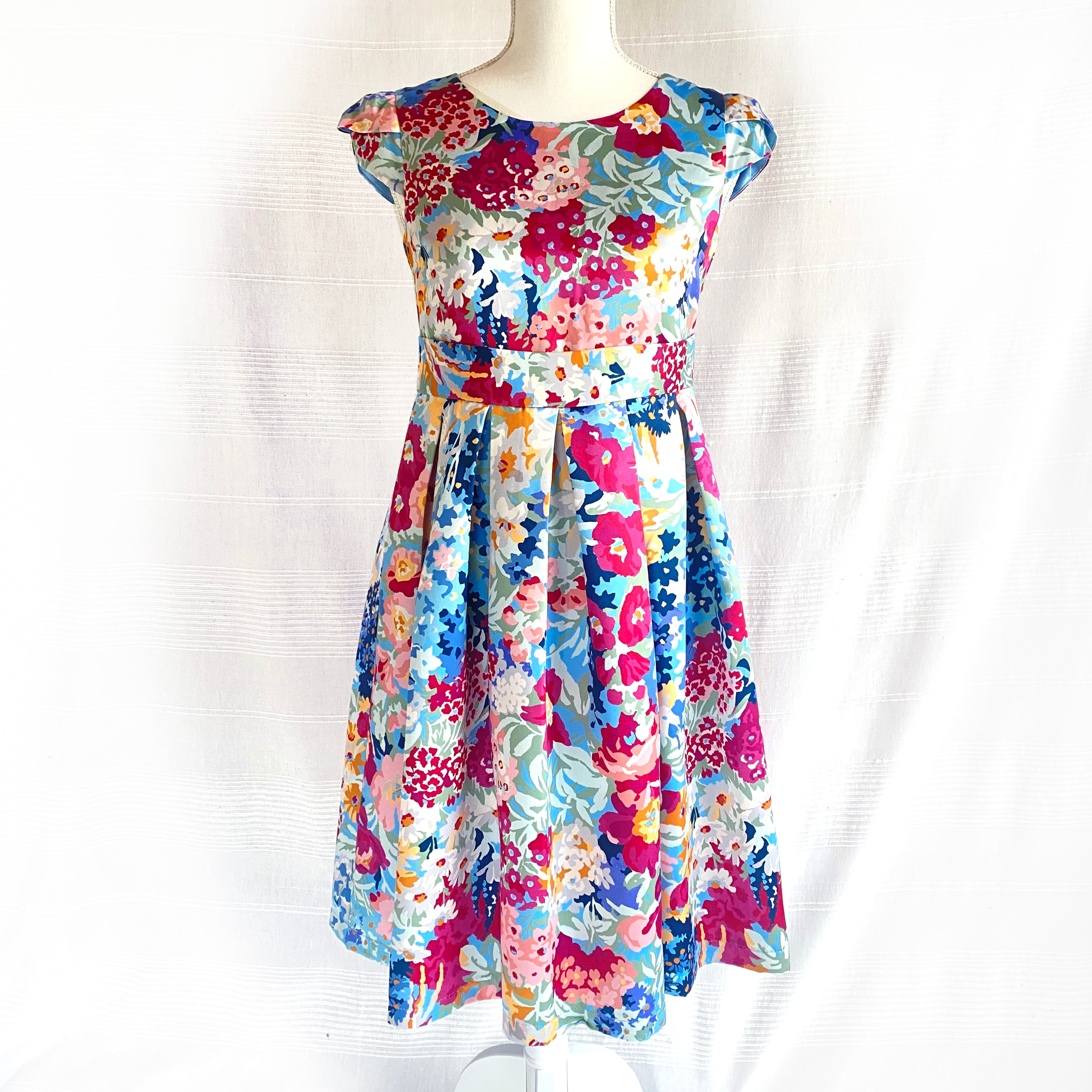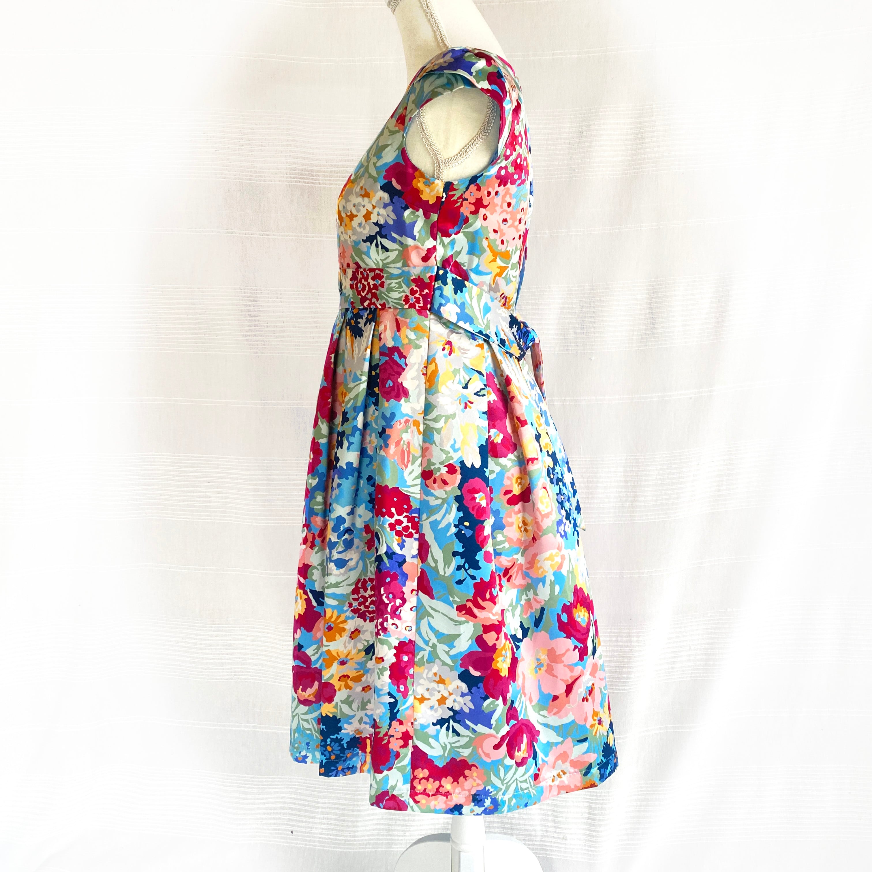 水色にカラフルなフラワープリントがあざやかな、主役になれるドレス。