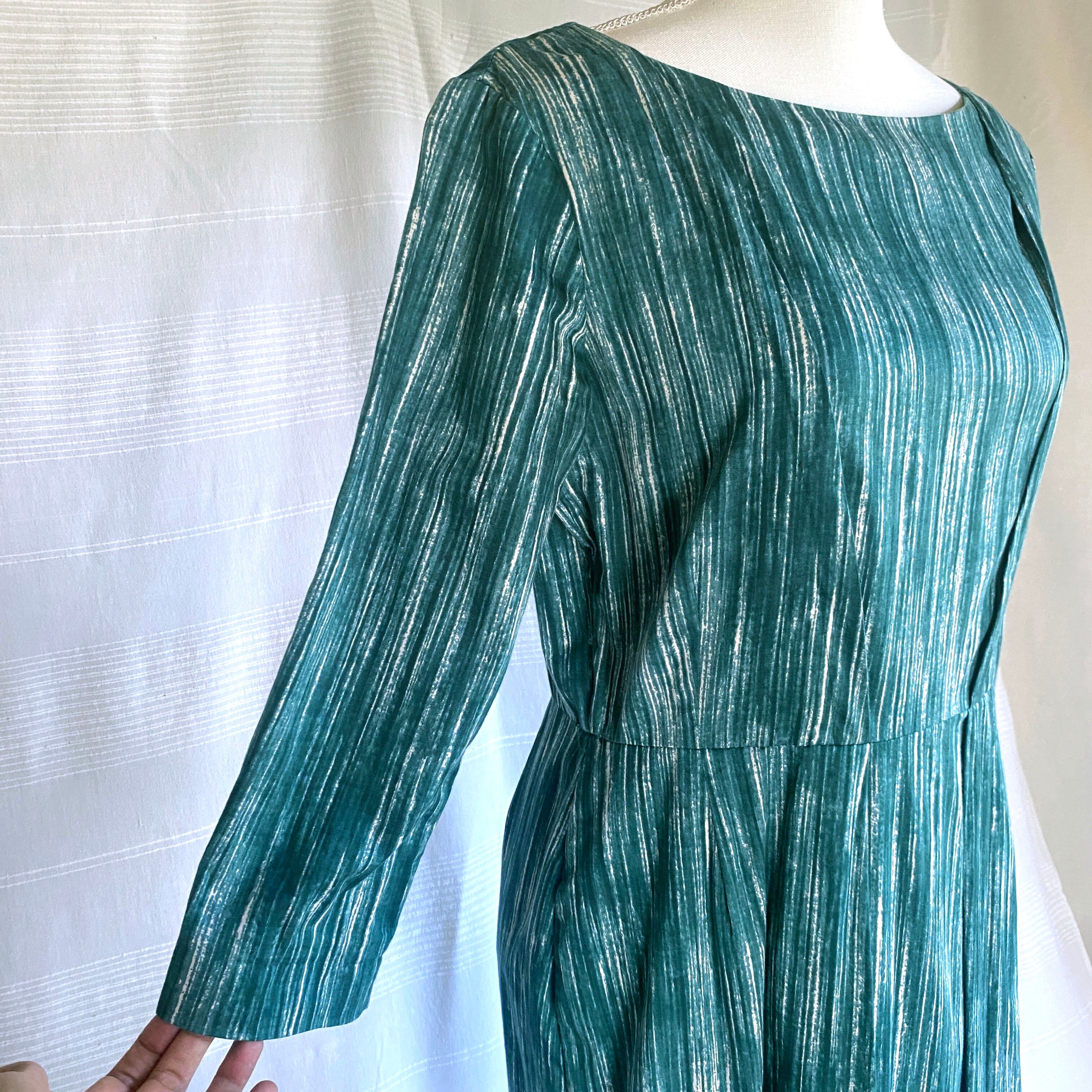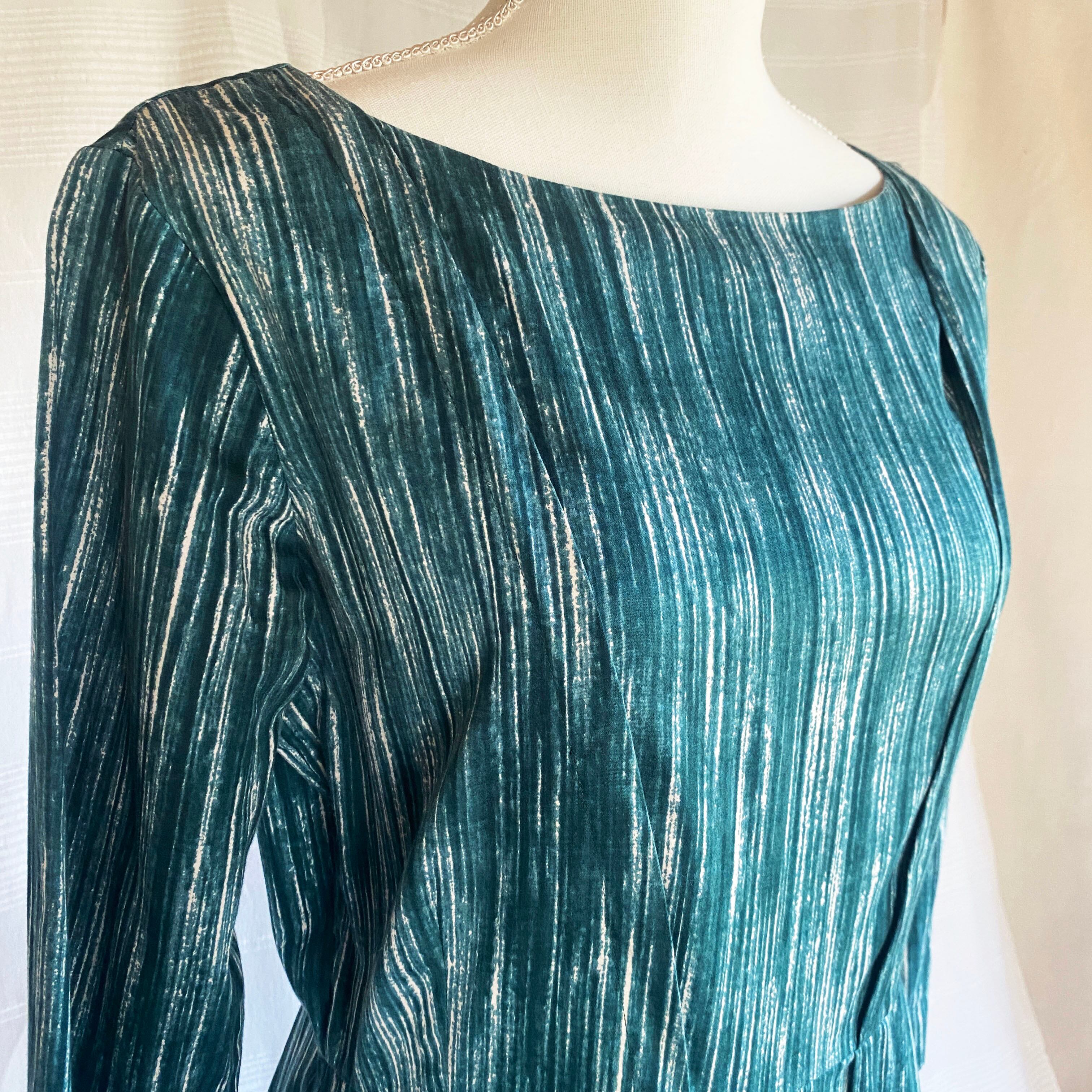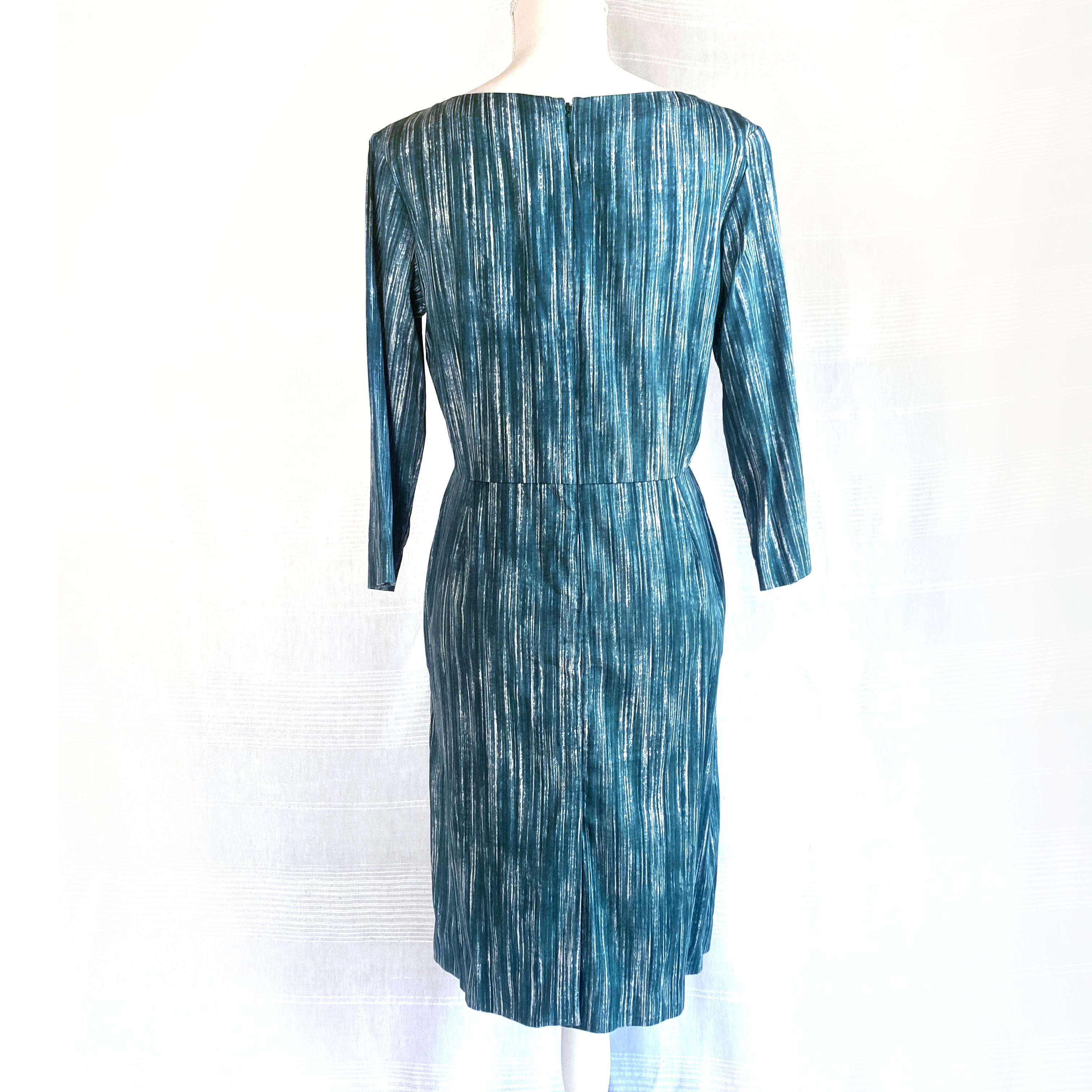 刷毛で塗ったようなランダムな縦ストライプがシャープな印象のドレス。