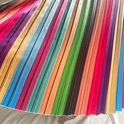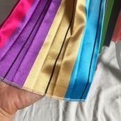 光沢のある生地にレインボーカラーをプリントしたスカート。
