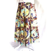 シアーな生地に花の刺繍を乗せたような、マルチカラーのフレアスカートです。
