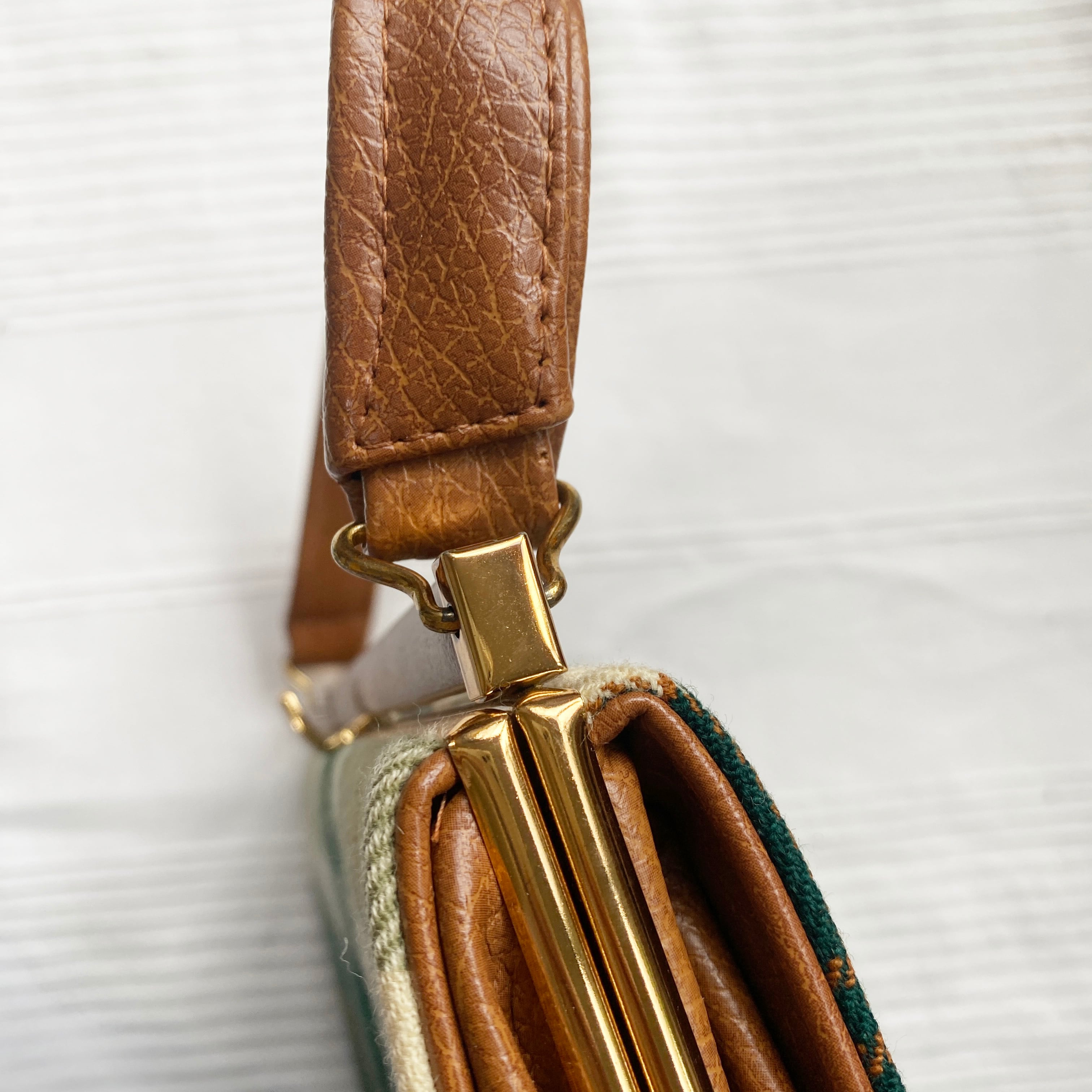グリーンのタータンチェック柄のクラシックなハンドバッグ。