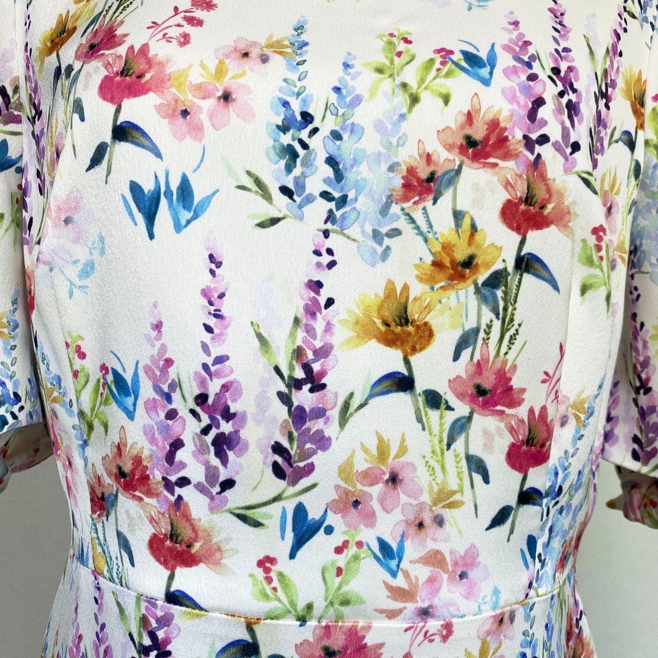 何より水彩で描いたようなカラフルなお花のプリントが素敵。