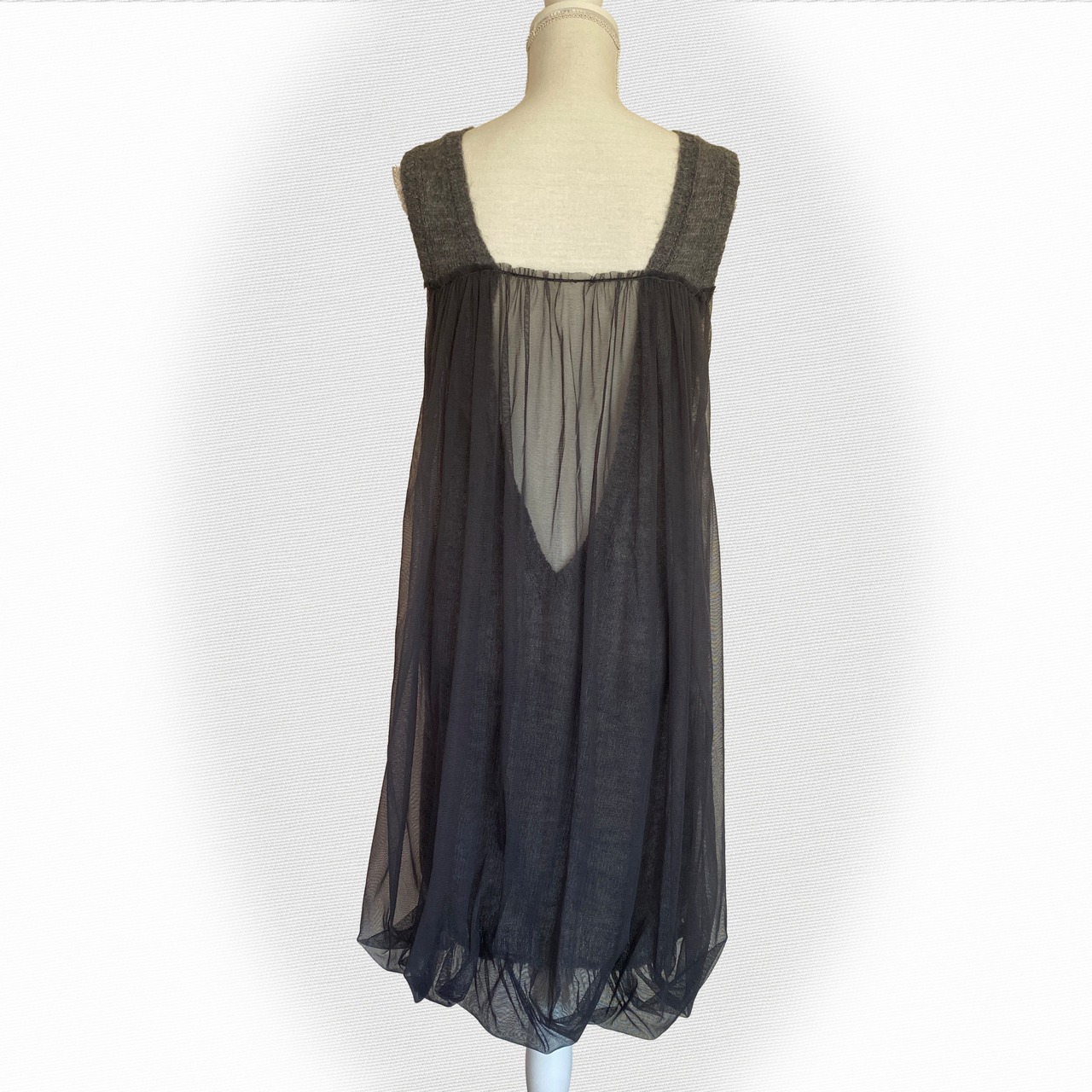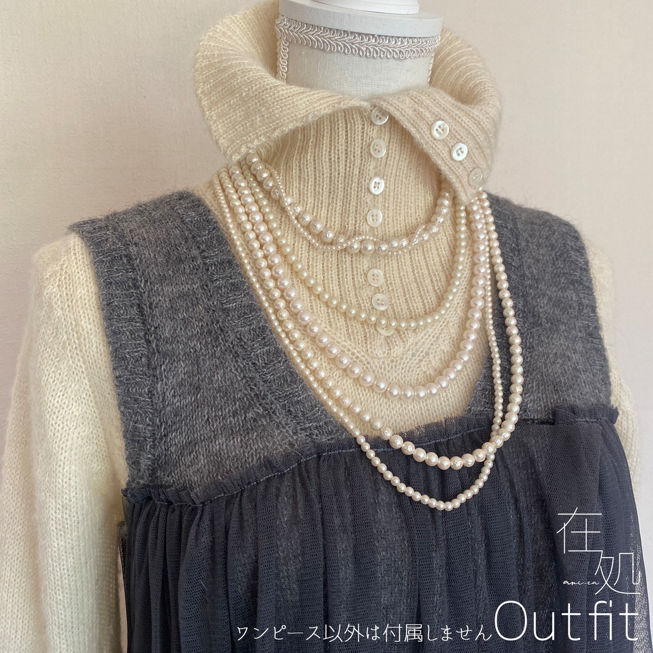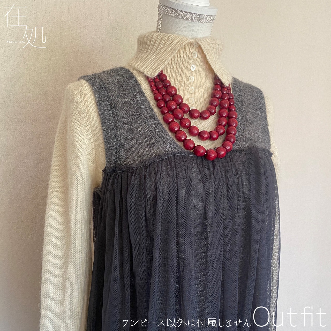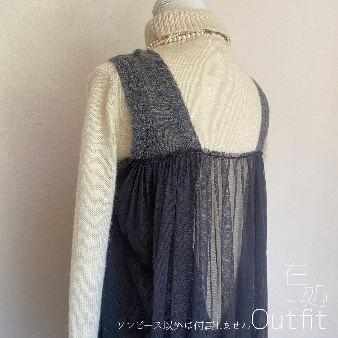レースの裾のボリュームや、異素材のつくる雰囲気がユニークながら、