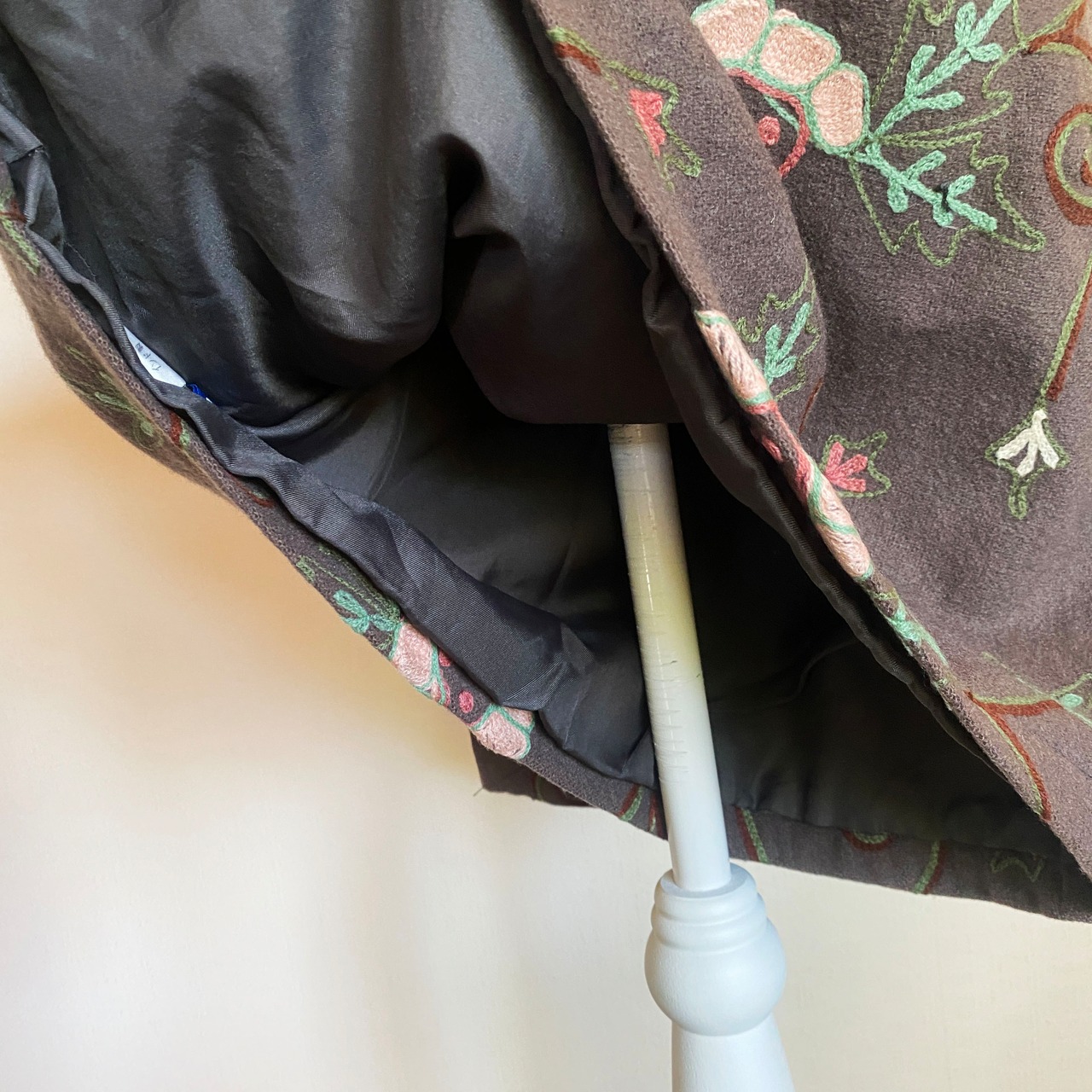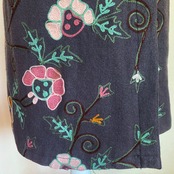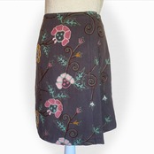 ゆるい線画のような、ぽってりとしたお花の刺繍が全面にほどこされたラップスカート。