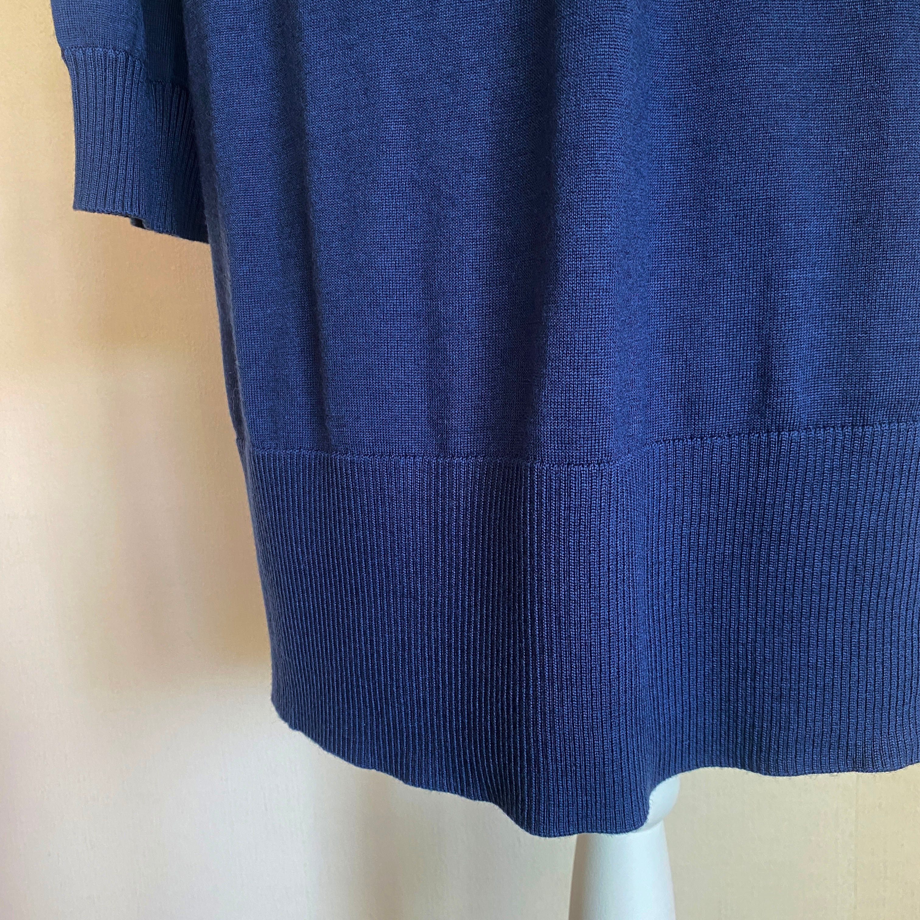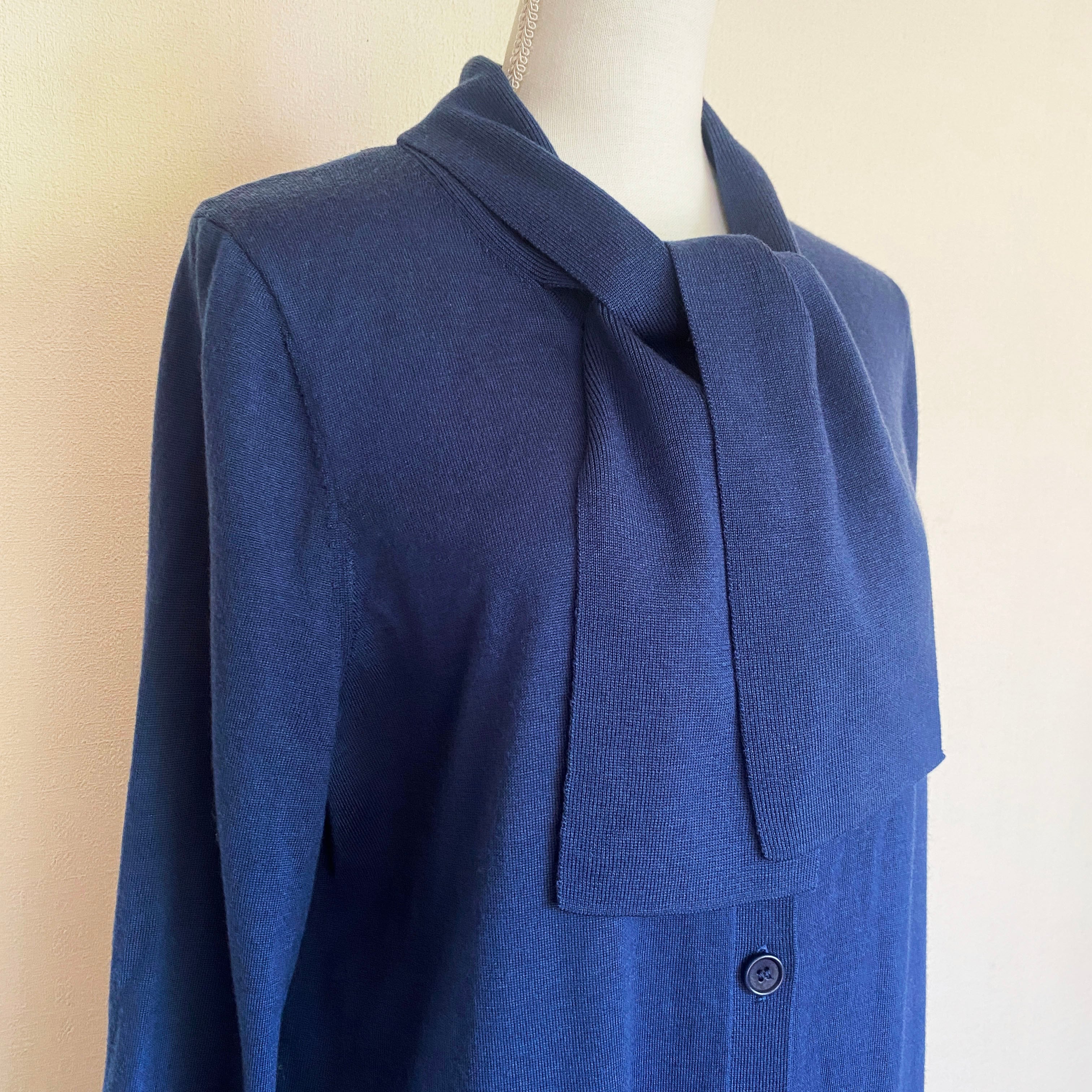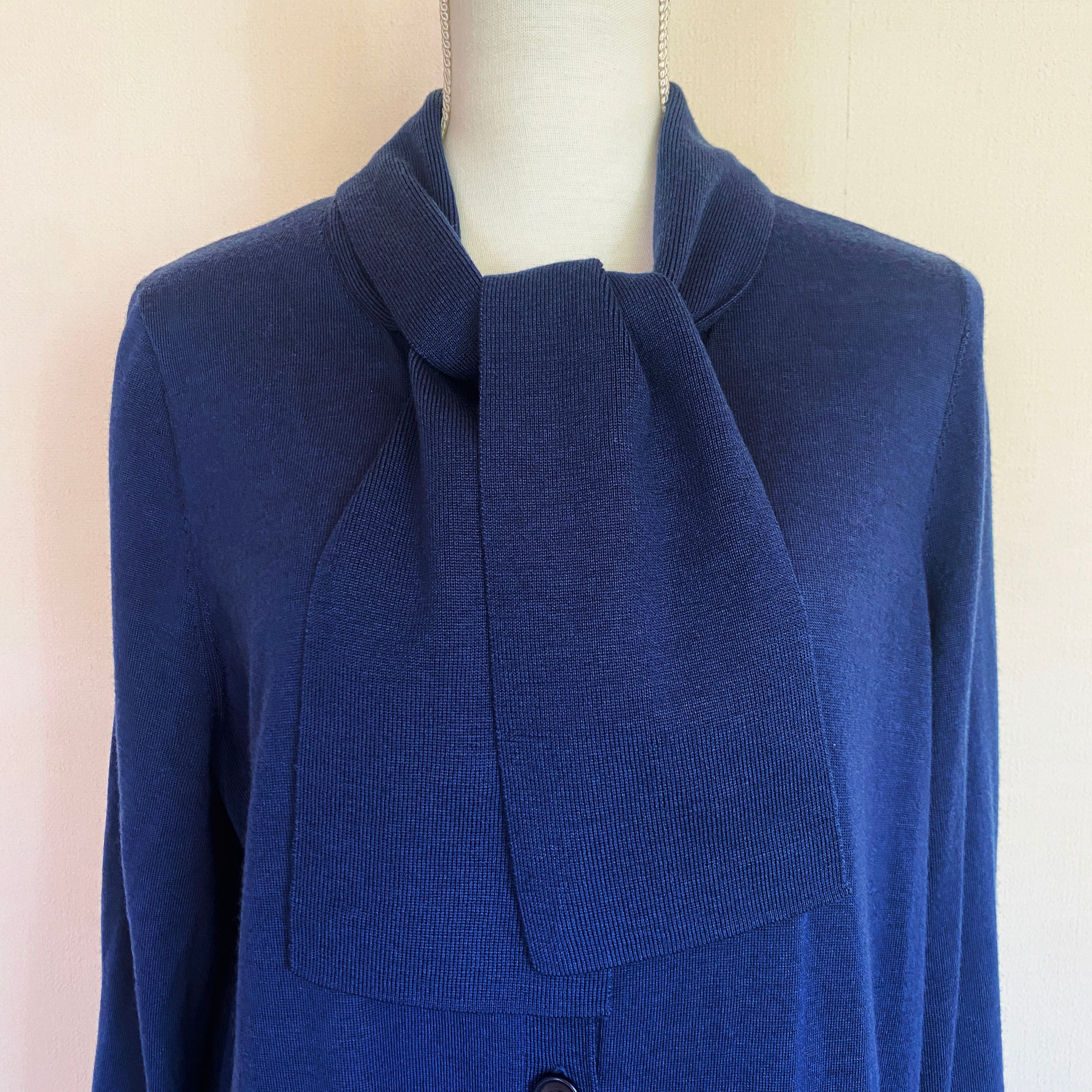 ロイヤルブルーからワントーンだけ沈んだ感じの、なんとも言えないブルーが美しいロングカーディガン。