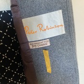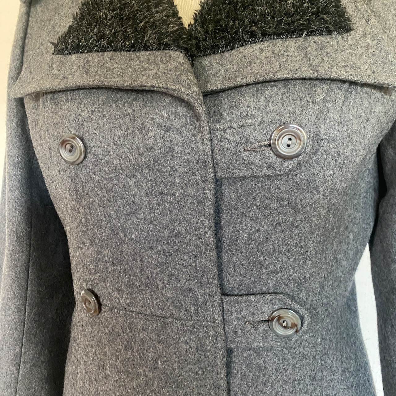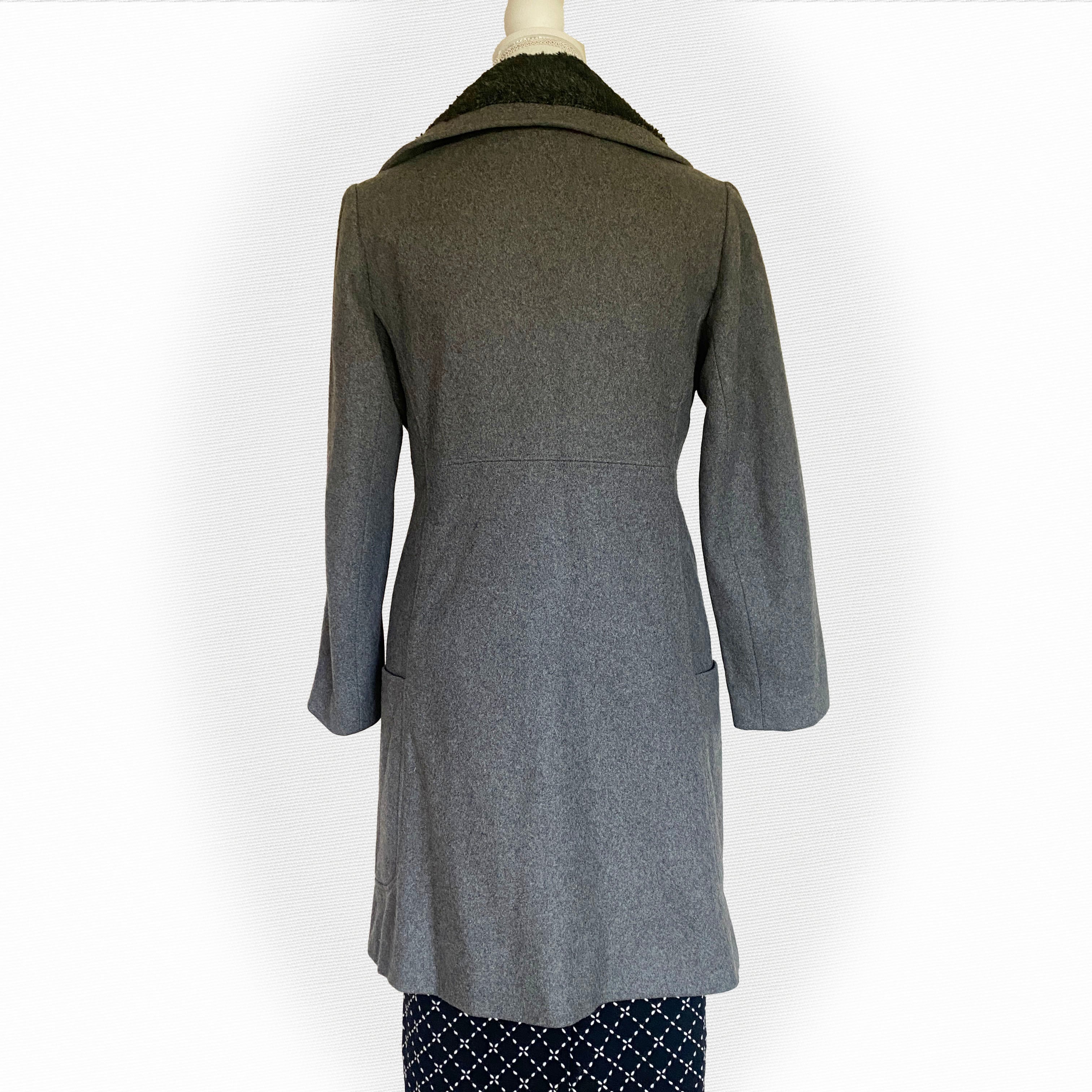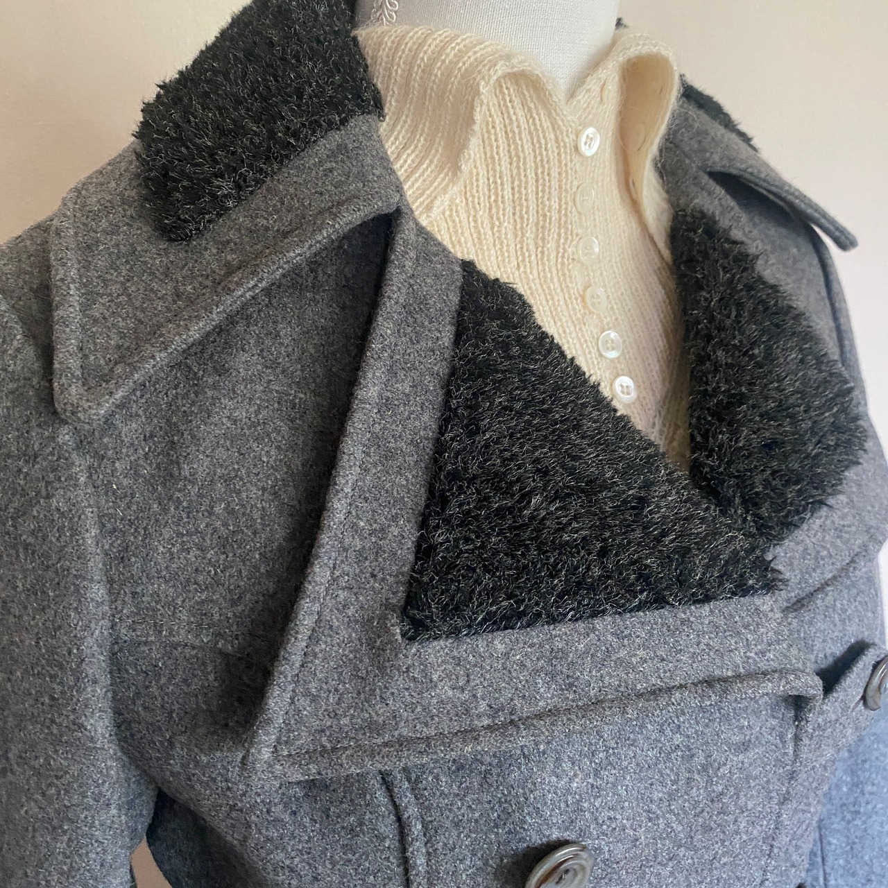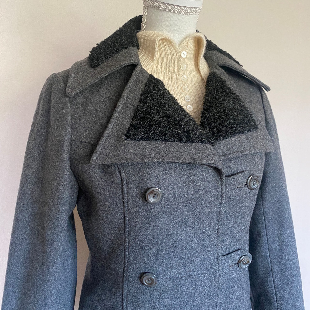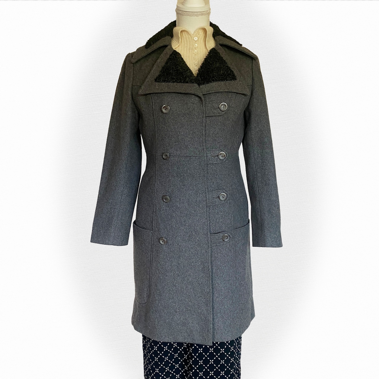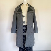 ダブルになっているボタン部分のデザインも凝っていて、ぴしっとした生地とややウエストを絞ったシルエットともに、きりっとした印象を与えます。来ていると背筋が伸びそうですね。