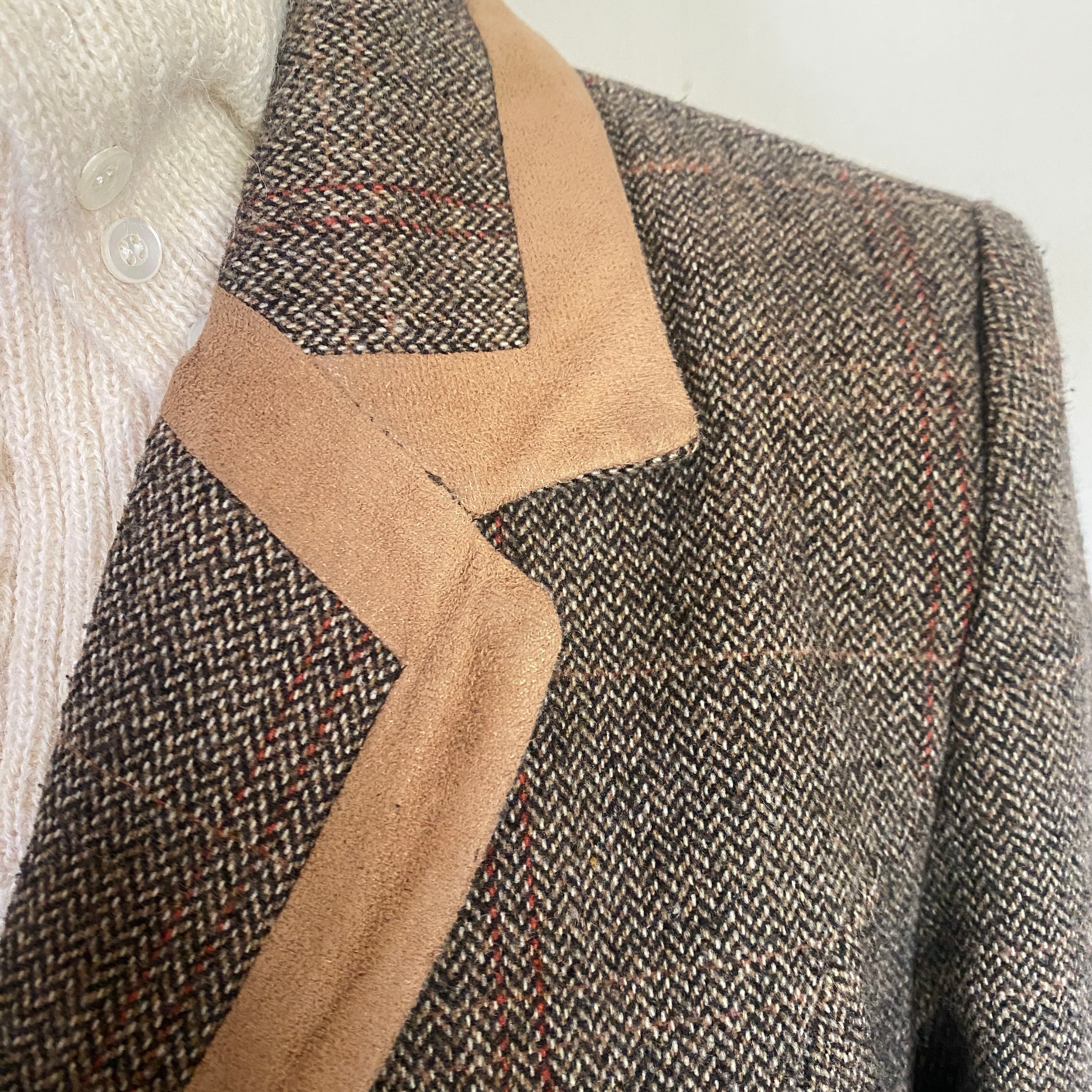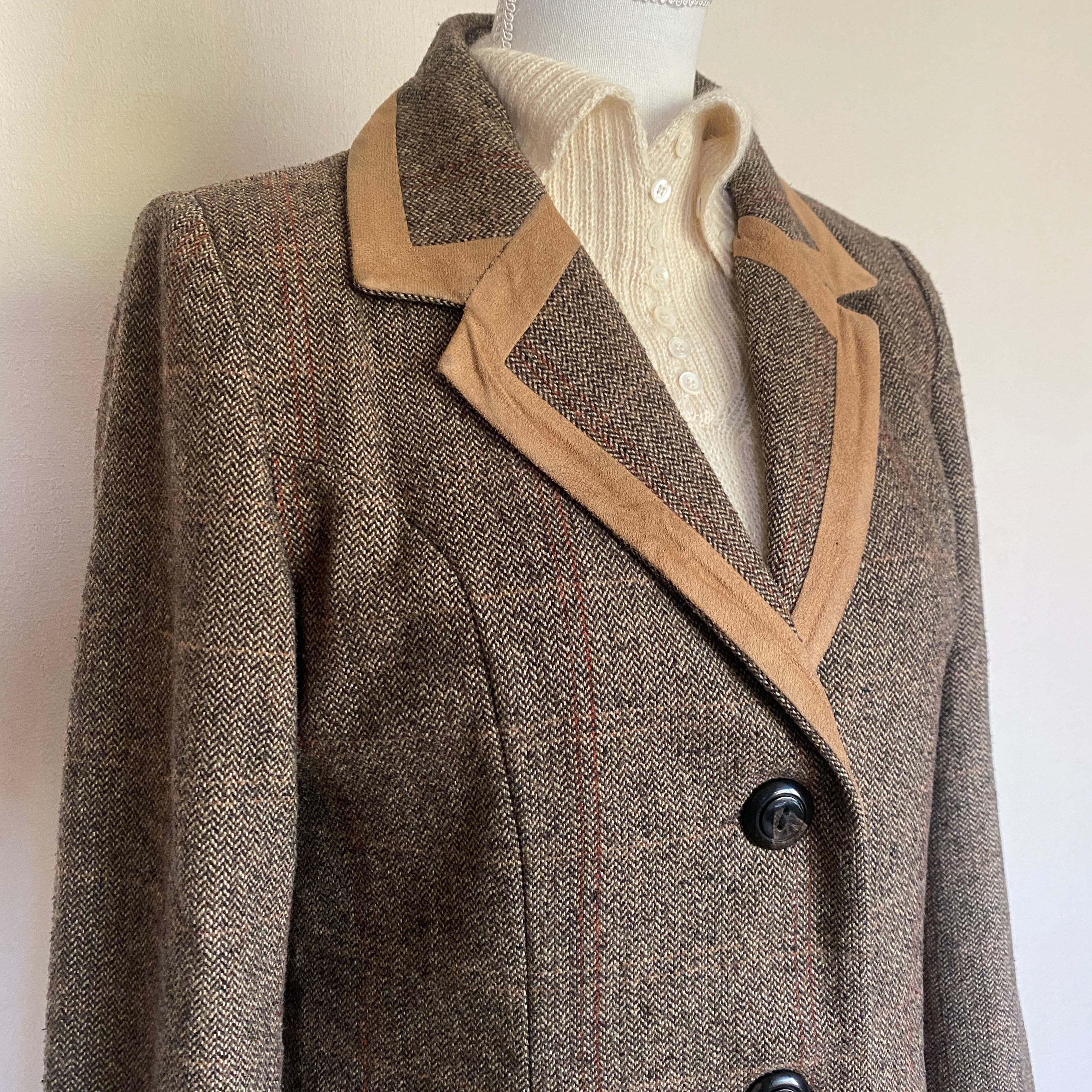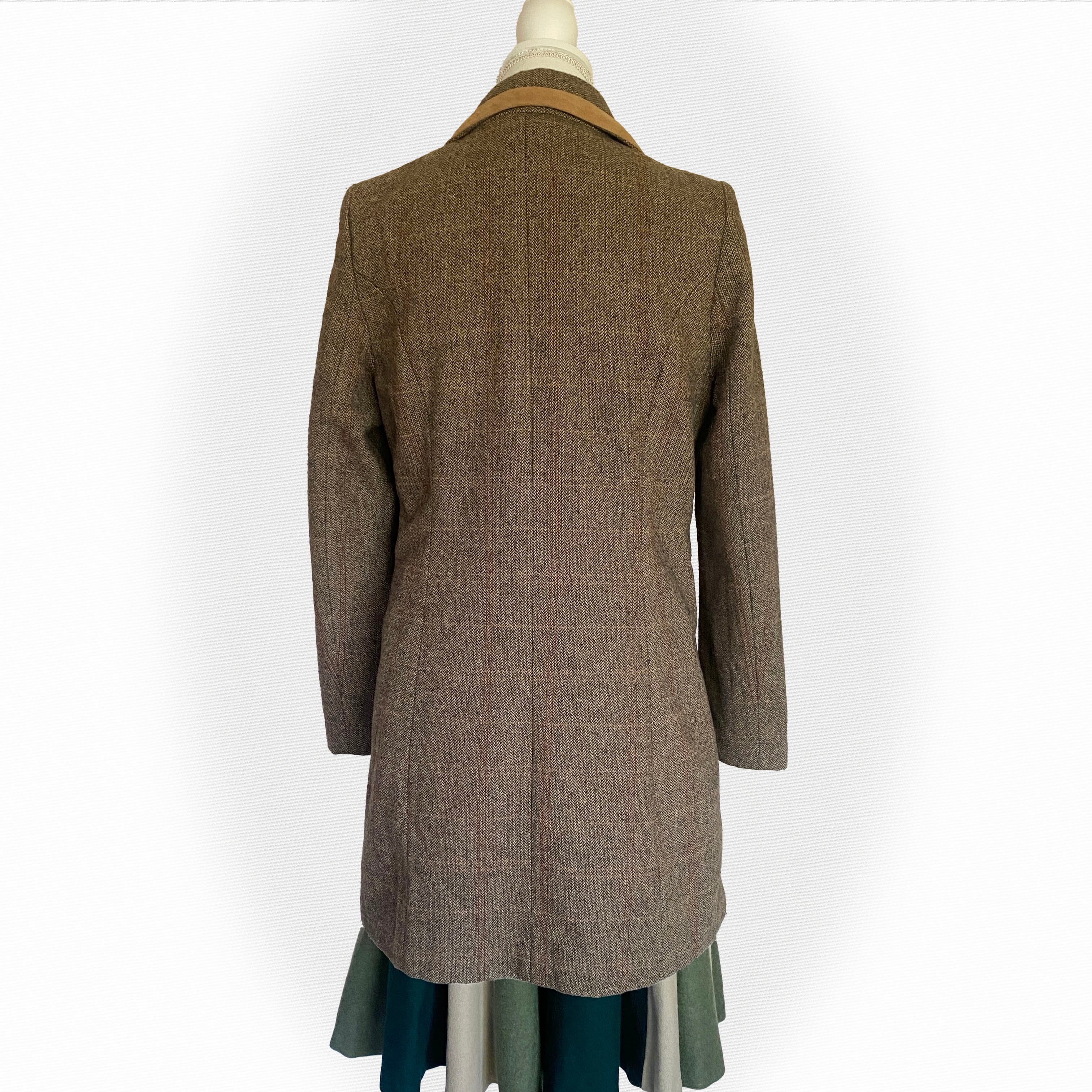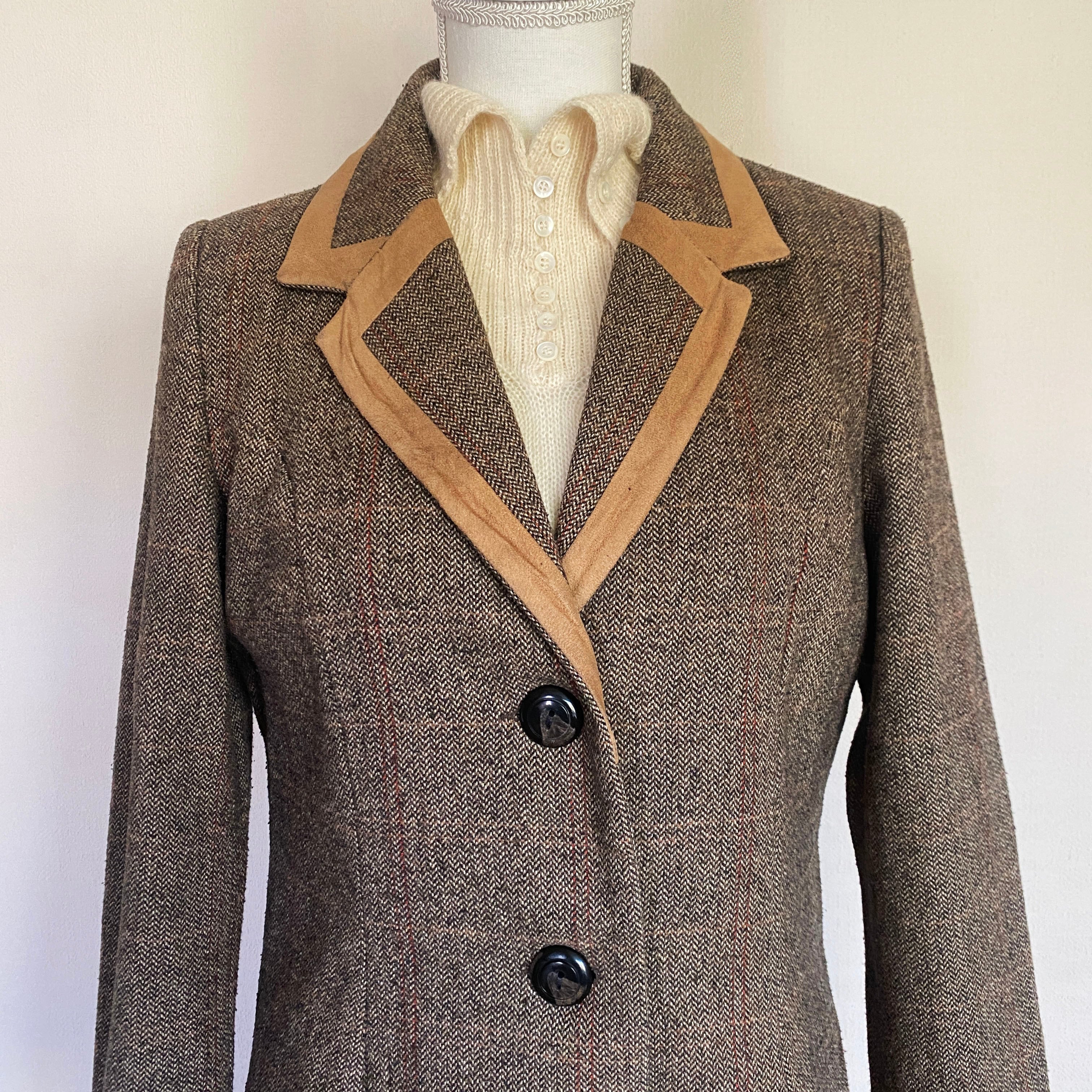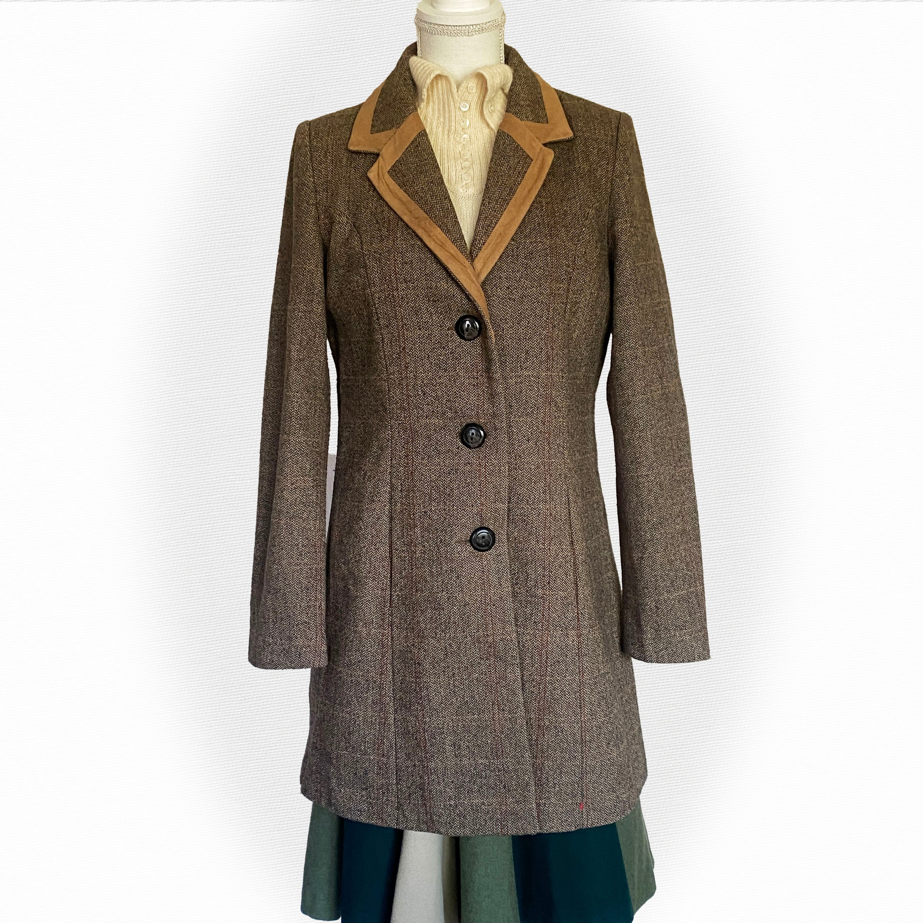 襟元のスエードや、ウエストを絞ったシルエットがトラッドな雰囲気を演出してくれます。