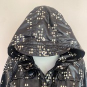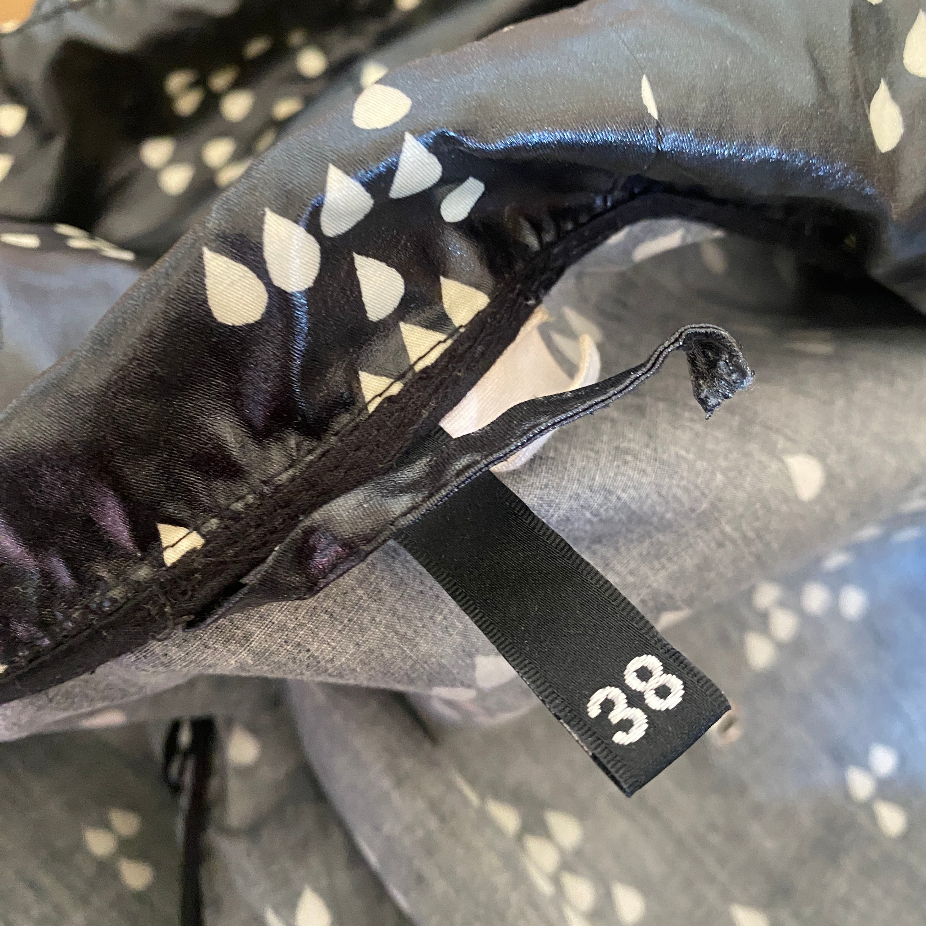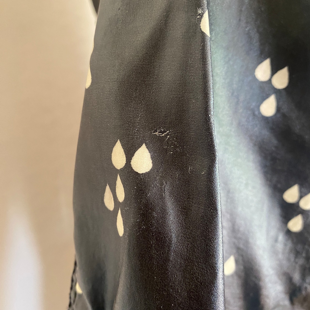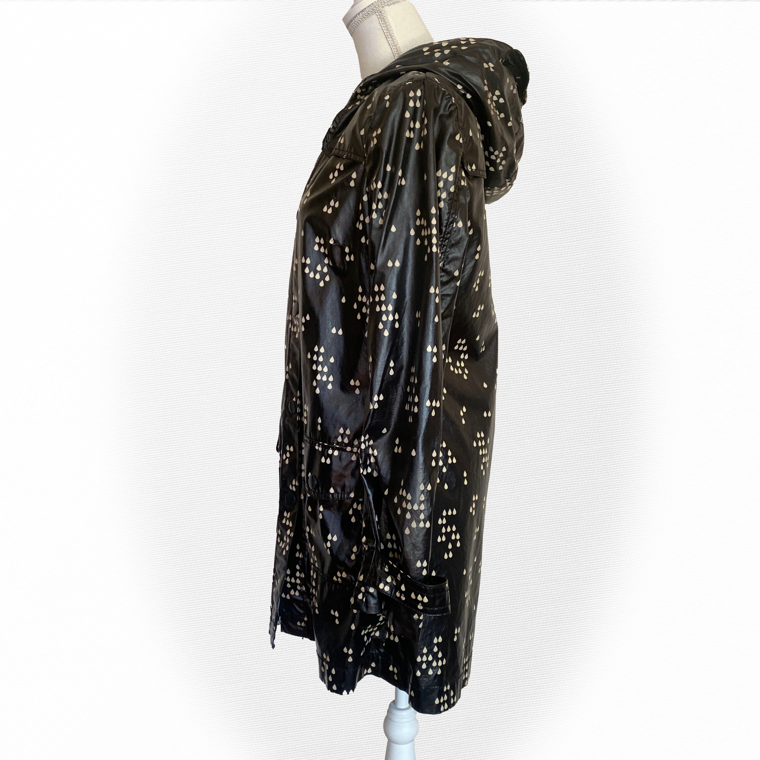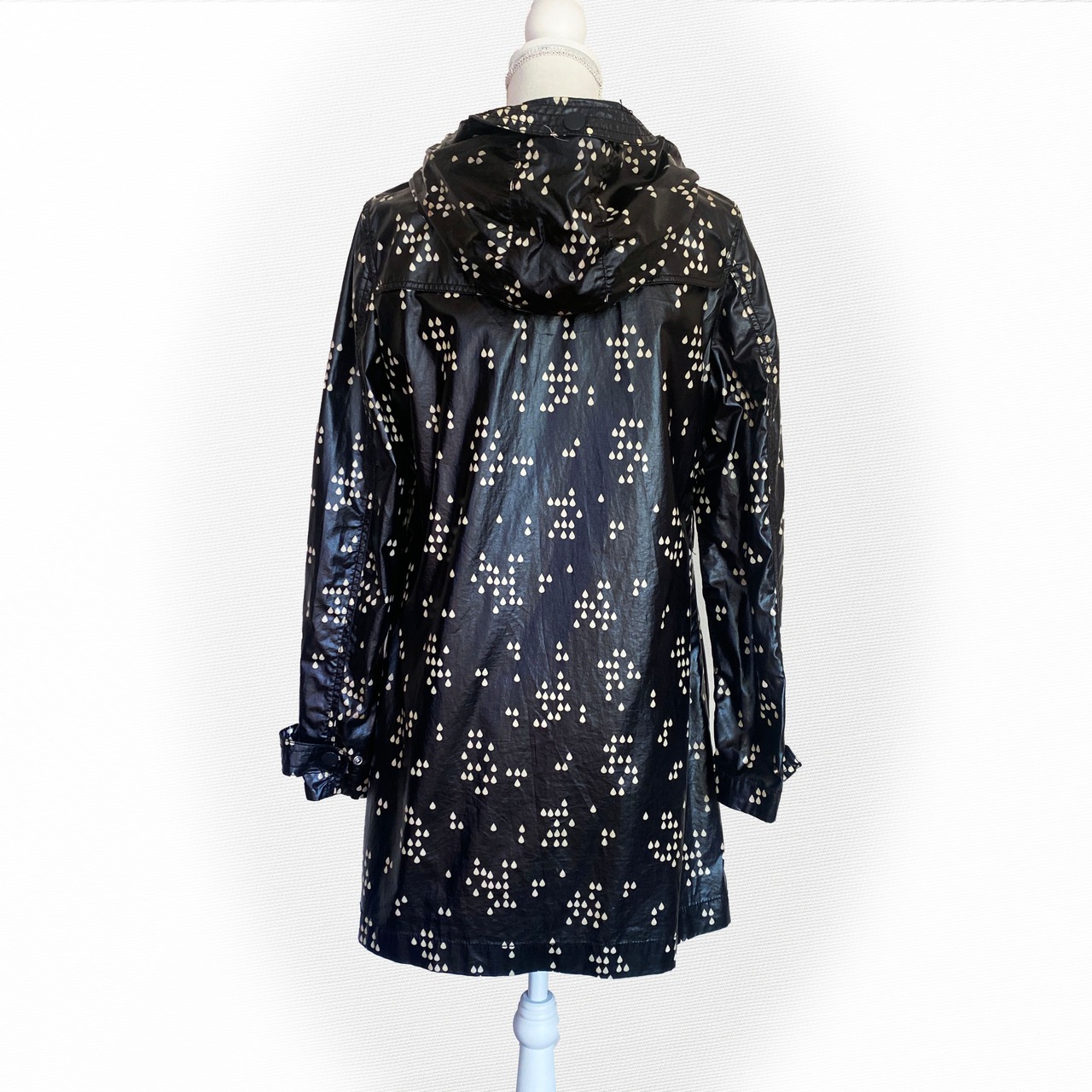 つやけしのビニールコート生地に、白のしずく型のランダムドットがかわいいレインコート。