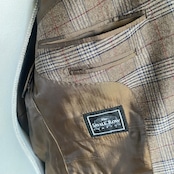 ブラウン基調に、赤の細いラインが効いた、トラッドなジャケット。